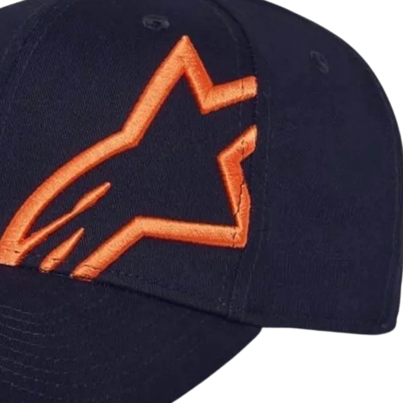 O destaque fica por conta do logotipo da Alpinestars bordado em 3D, que reforça o visual esportivo e sofisticado. O fechamento Snapback permite um ajuste prático e seguro, adaptando-se facilmente a diferentes tamanhos de cabeça.