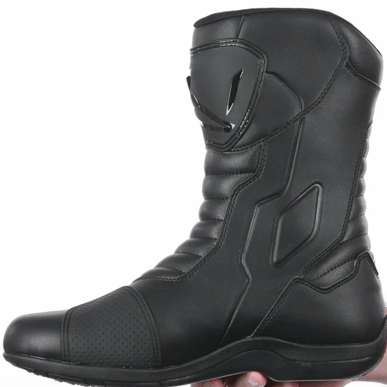 Sua estrutura reforçada inclui proteções em TPU nas áreas críticas, espuma absorvente de impacto e entressola anatômica com haste rígida para distribuição eficiente do peso. A sola vulcanizada exclusiva da Alpinestars proporciona tração superior e estabilidade, enquanto o sistema de fechamento com tiras e ponteiras em TPR assegura ajuste rápido e seguro.