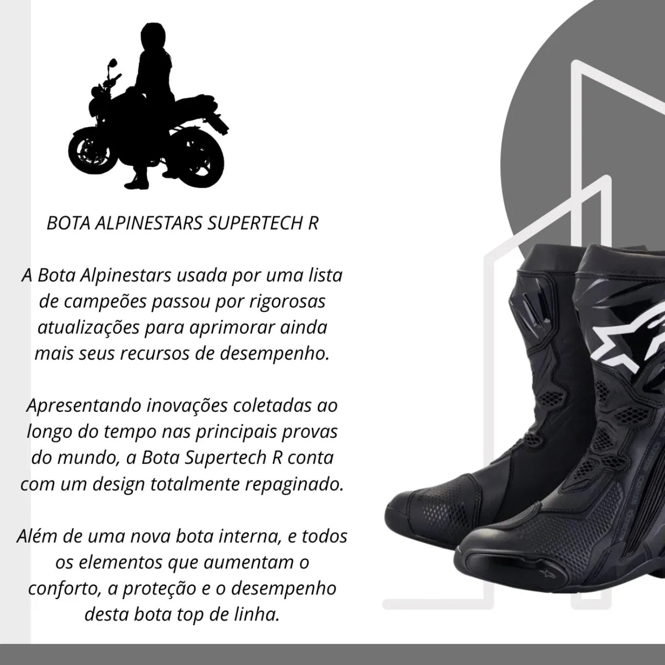 Bota Alpinestars Supertech R Preto – Máxima Proteção e Performance para Pilotos de Alta Performance