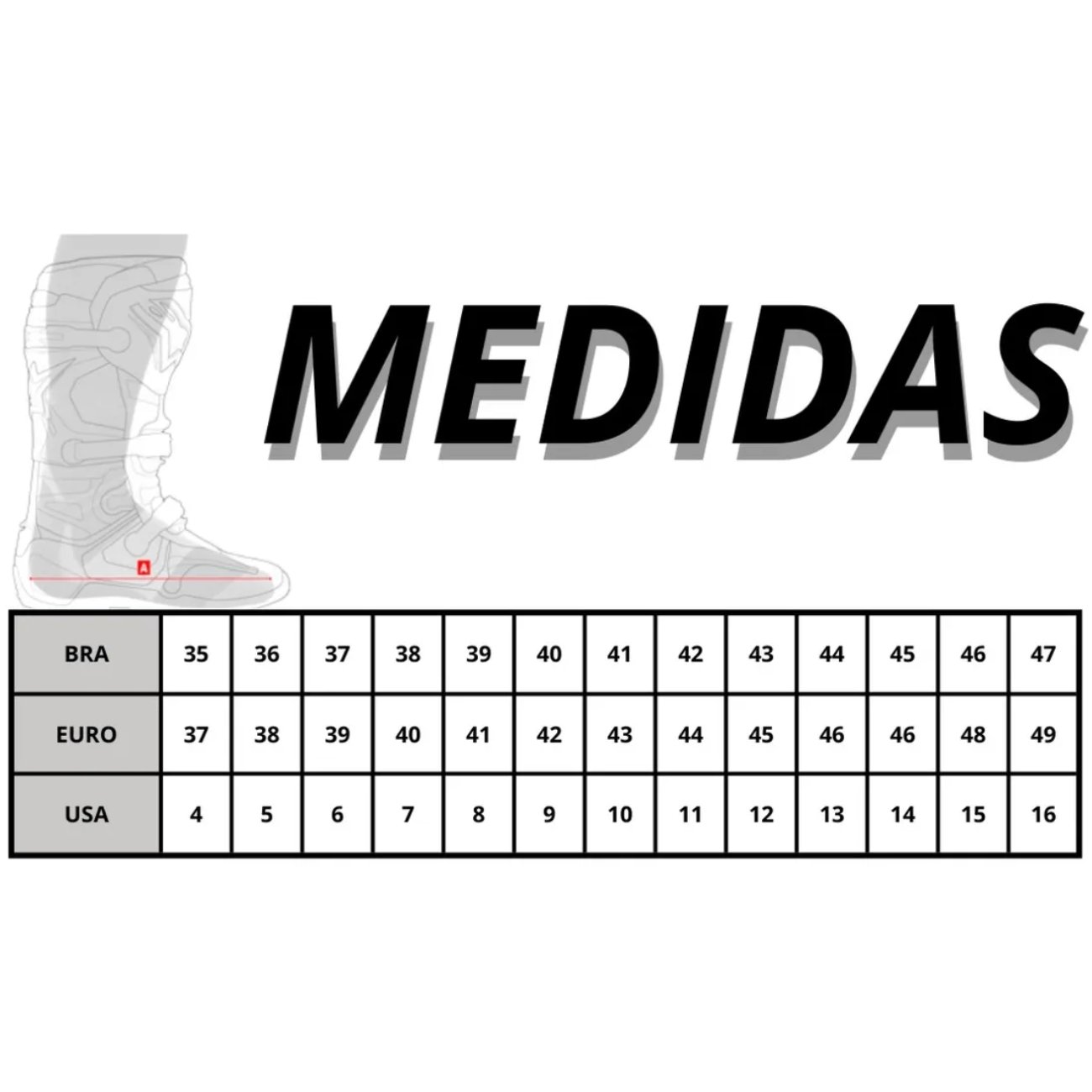 Conforto prolongado: interior em microfibra respirável e palmilha de EVA com controle térmico e de umidade, ideal para longas horas de pilotagem.