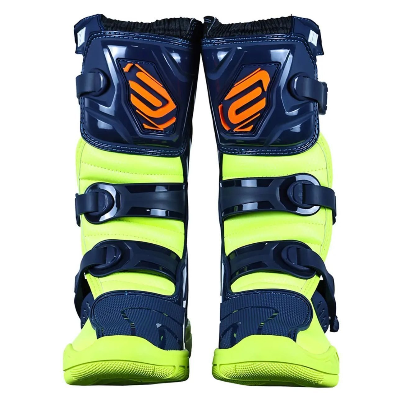 Desenvolvida para garantir a máxima proteção e conforto aos jovens pilotos, com peças que garantem excelente aderência a moto e sistema de proteção ao tornozelo.