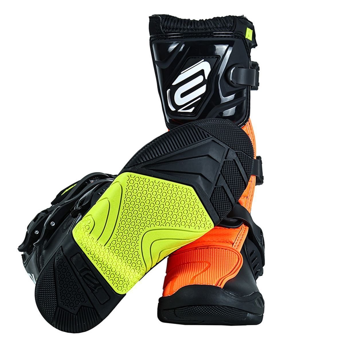 O interior em microfibra oferece excelente conforto térmico, mantendo os pés secos e frescos em diversas condições climáticas. A aderência otimizada às motos ajuda a melhorar o controle e a segurança do jovem piloto, promovendo uma pilotagem mais estável e segura.