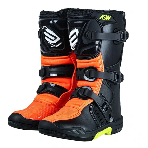 A Bota ASW Kids foi especialmente desenvolvida para proporcionar máxima proteção e conforto aos jovens pilotos que estão iniciando no motocross ou off-road. Com design focado na segurança, possui reforços internos em plástico injetado nas regiões da canela, panturrilha e calcanhar, seguindo o padrão de certificação CE, garantindo resistência superior a impactos e prevenindo torções nos pés durante a pilotagem.