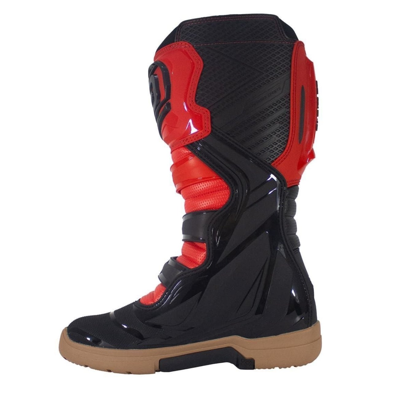O sistema de fechamento com quatro fivelas ajustáveis e velcro superior proporciona ajuste firme e personalizado, mesmo nas condições mais extremas. O forro interno em microfibra e a palmilha em EVA proporcionam conforto térmico, ventilação eficaz e controle da umidade. Seu solado injetado alia resistência, aderência nas extremidades e conforto no centro, oferecendo estabilidade e segurança em curvas. Além disso, a cobertura antichamas protege contra o calor da moto, assegurando maior durabilidade.