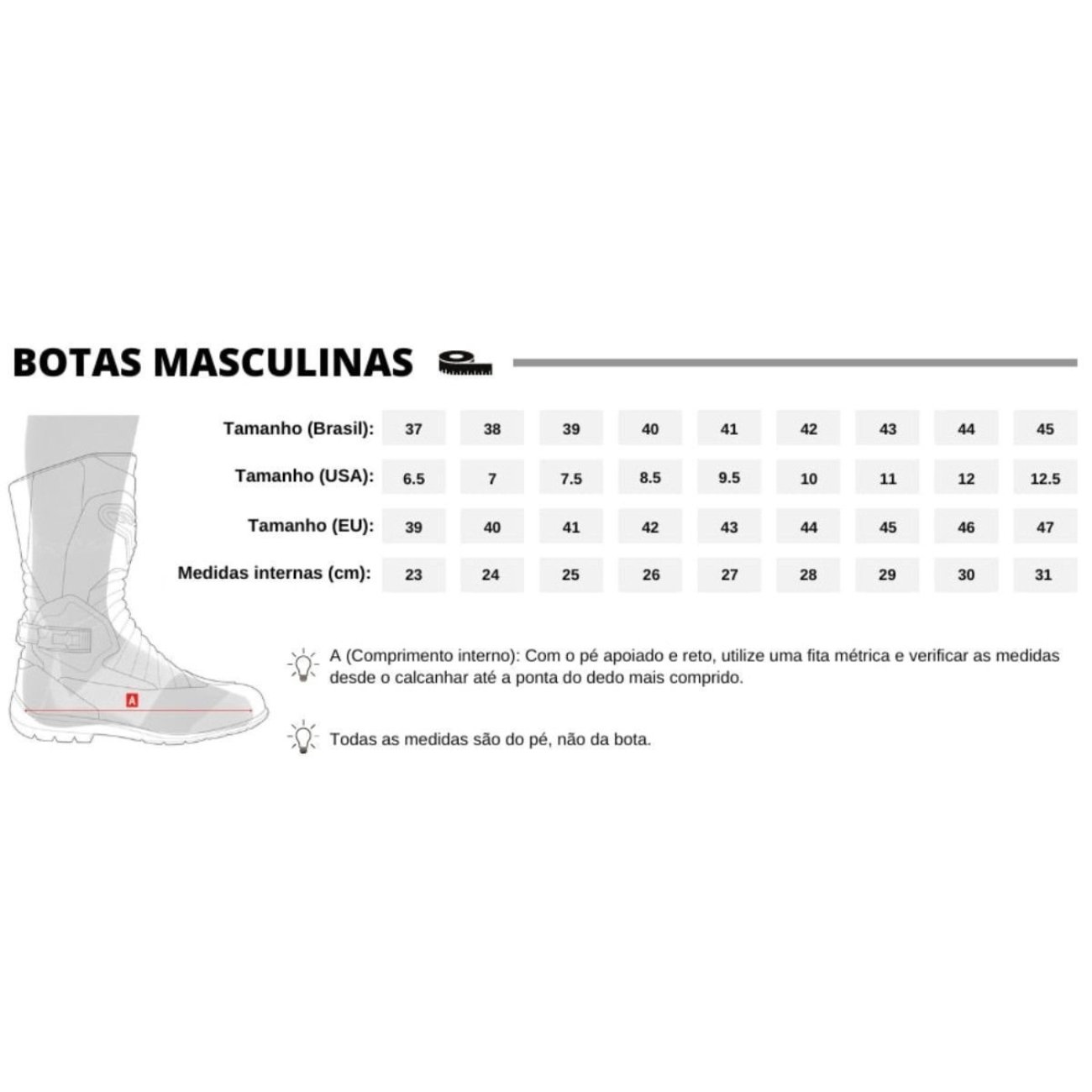 Com certificação europeia CE EN13634:2017, a XT-8 oferece proteção reforçada nos tornoselos, calcanhar, biqueira e canela, além de fechamento com fivelas microajustáveis e tira de velcro, garantindo ajuste preciso e seguro. Um calçado completo para quem não abre mão de segurança, funcionalidade e performance, dentro ou fora da moto.