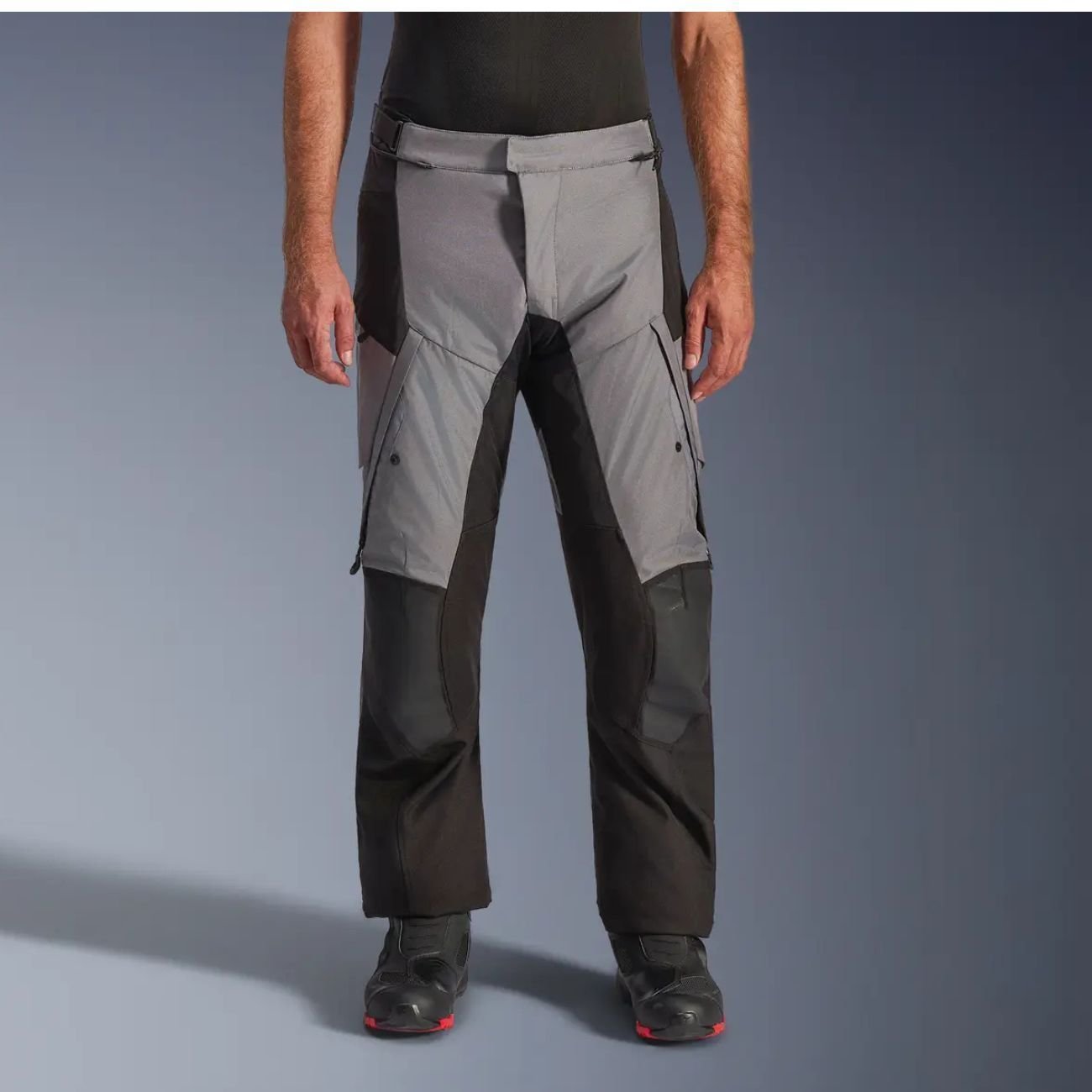 - Zíperes à prova d'água nas aberturas de ventilação das coxas garantem um fechamento seguro e gerenciamento eficaz do fluxo de ar.