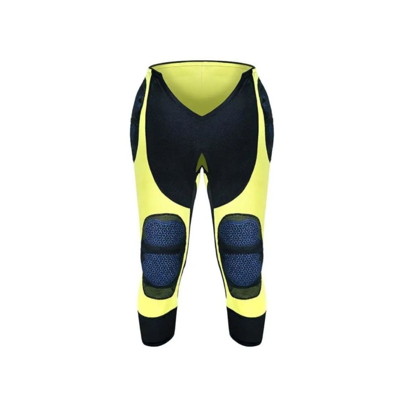 A segurança é reforçada com proteções certificadas CE level 1, leves e perfuradas, que garantem conforto e eficiência. Além disso, os bolsos para os protetores contam com regulagem de altura em dois níveis, proporcionando ajuste personalizado para melhor proteção.