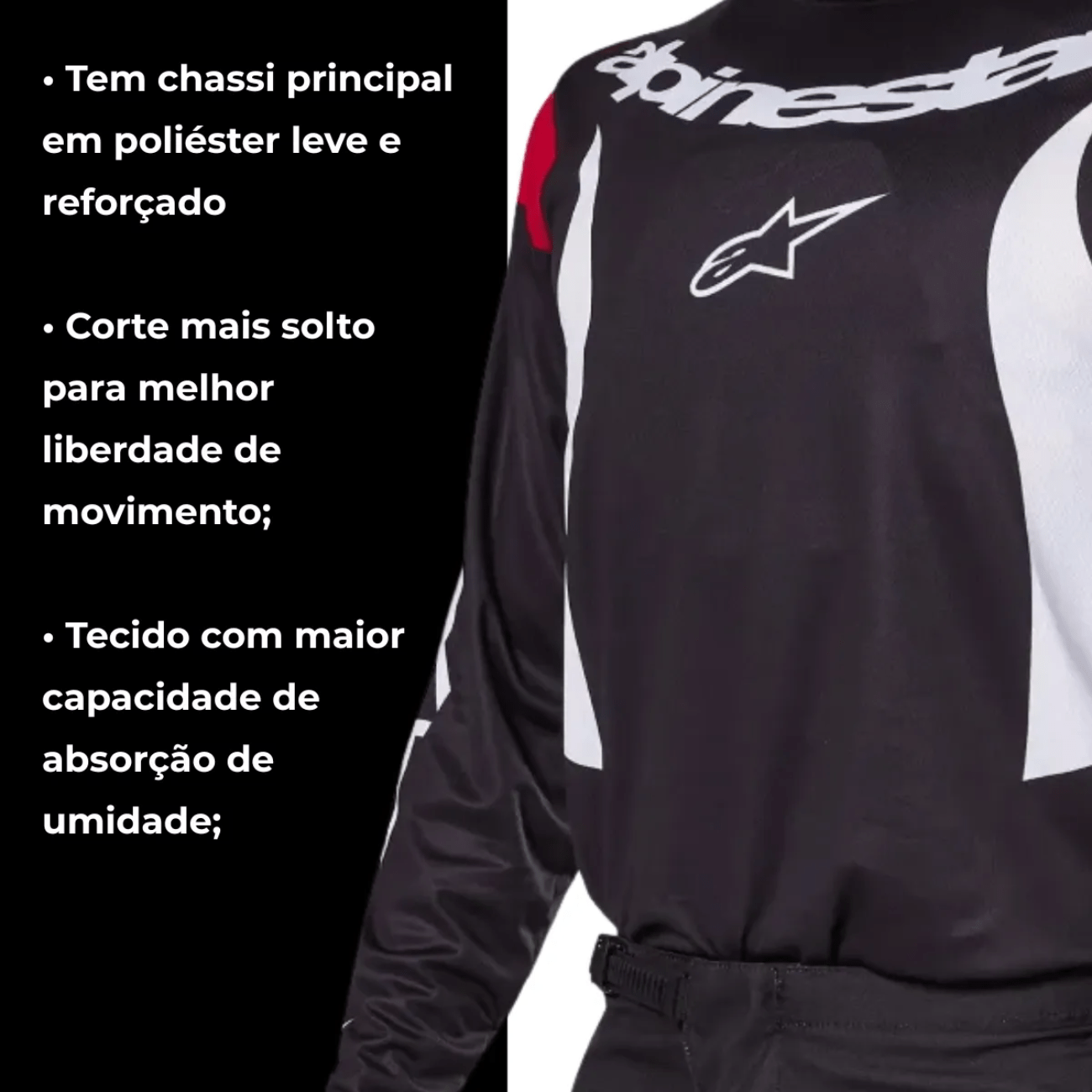 A Camisa Alpinestars Fluid é a escolha ideal para pilotos que buscam durabilidade e conforto sem abrir mão da performance durante os treinos ou trilhas de fim de semana.