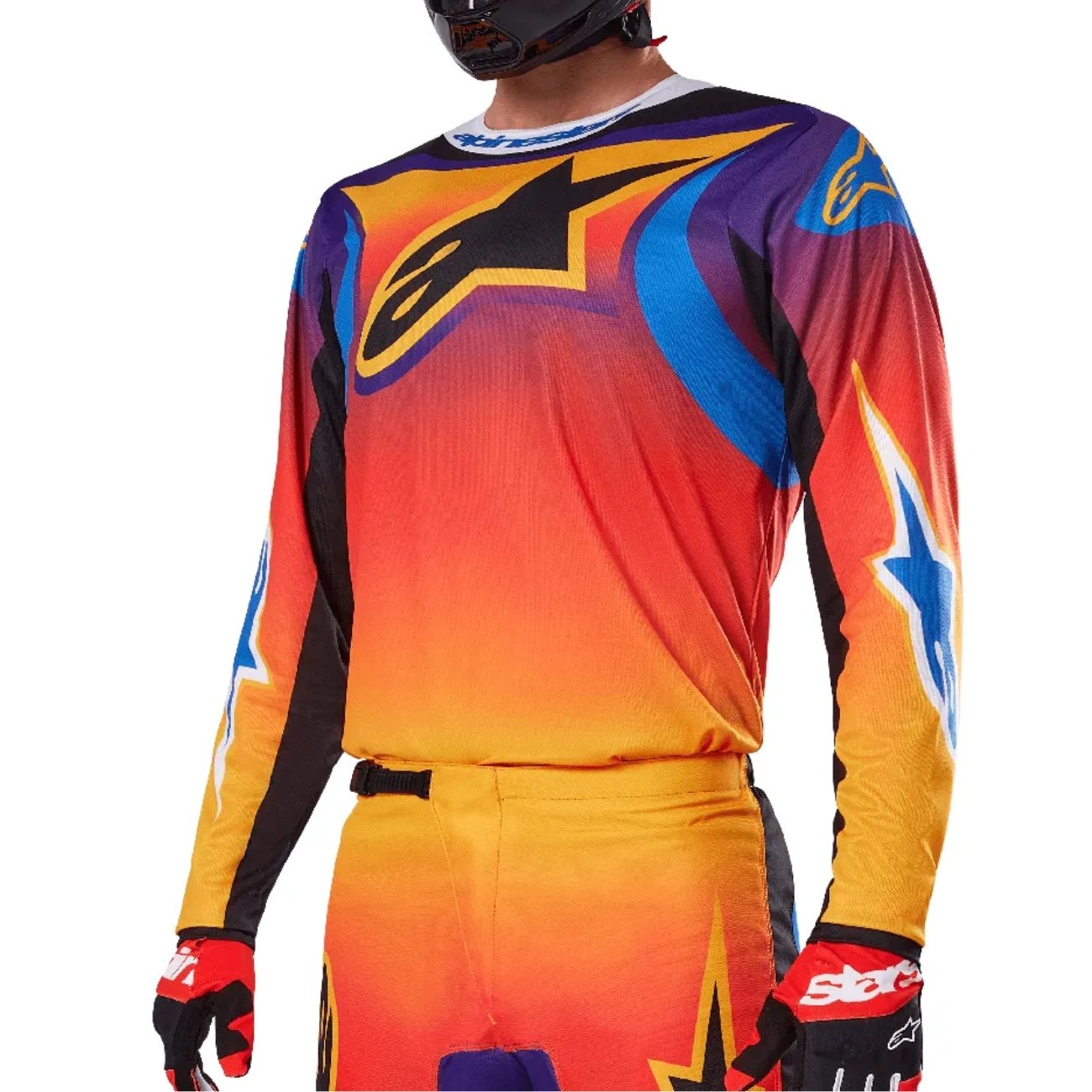 Com chassi principal em poliéster leve e reforçado, o conjunto garante maior resistência ao desgaste e excelente capacidade de absorção de umidade, mantendo o corpo seco mesmo sob esforço prolongado. A modelagem da camisa é pré-curvada, com corte mais solto, oferecendo liberdade de movimento essencial para pilotagens agressivas e dinâmicas.