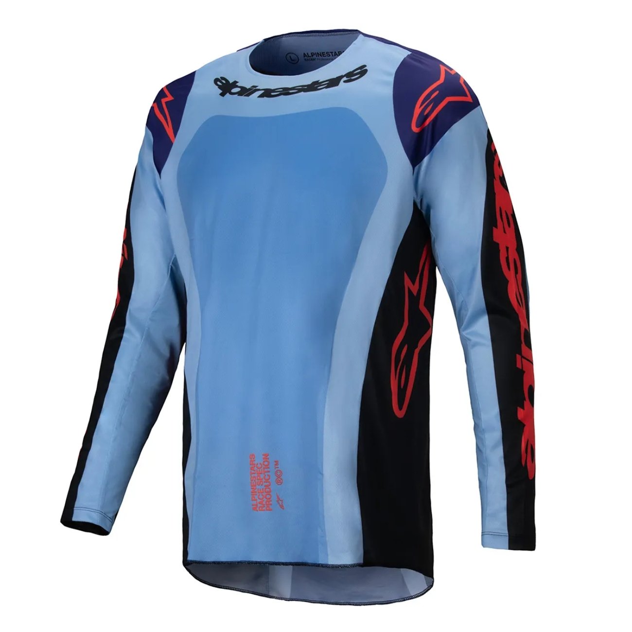 Seu design inclui uma gola anatômica que proporciona melhor ajuste e respirabilidade, especialmente em uso com protetores cervicais. A barra traseira alongada garante encaixe perfeito dentro das calças, promovendo mobilidade superior durante a pilotagem. Os punhos mais finos oferecem conforto e ajuste ao corpo, enquanto o grafismo sublimado assegura cores vibrantes por muito mais tempo.
