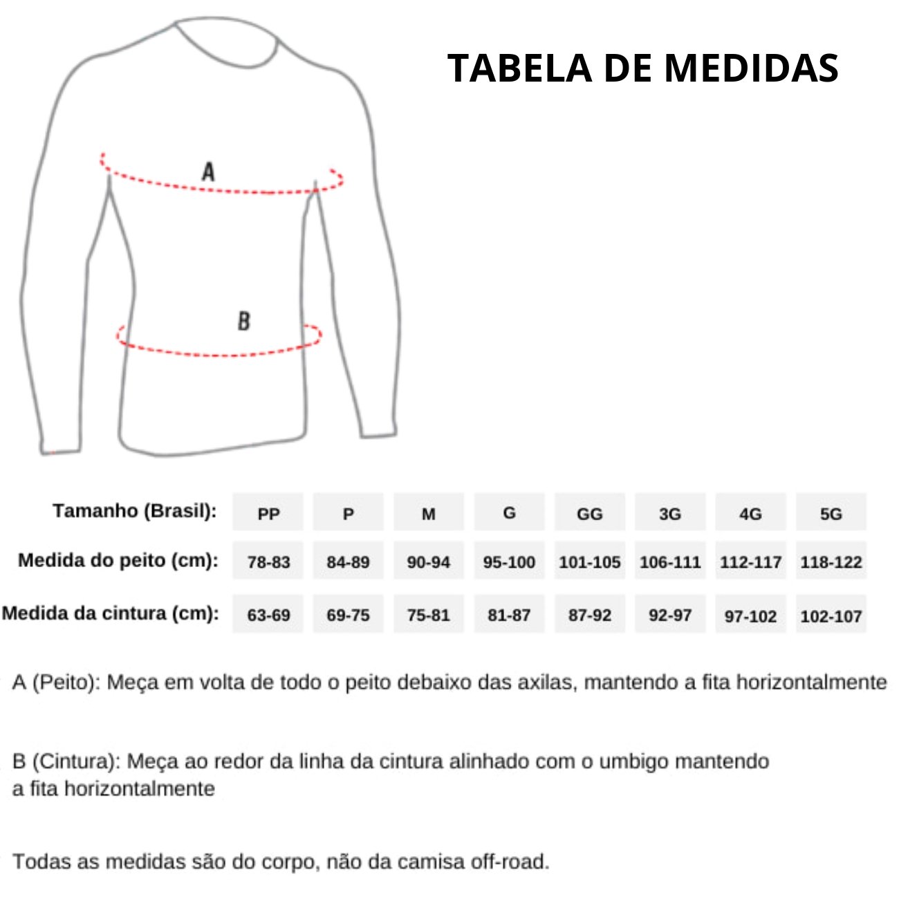 A camisa oferece ventilação eficiente com malhas estrategicamente posicionadas nas laterais dos braços, além de costuras reforçadas que aumentam sua durabilidade. A gola elástica se adapta perfeitamente ao protetor cervical, enquanto o painel traseiro alongado mantém a camisa encaixada à calça, evitando deslocamentos durante a pilotagem.