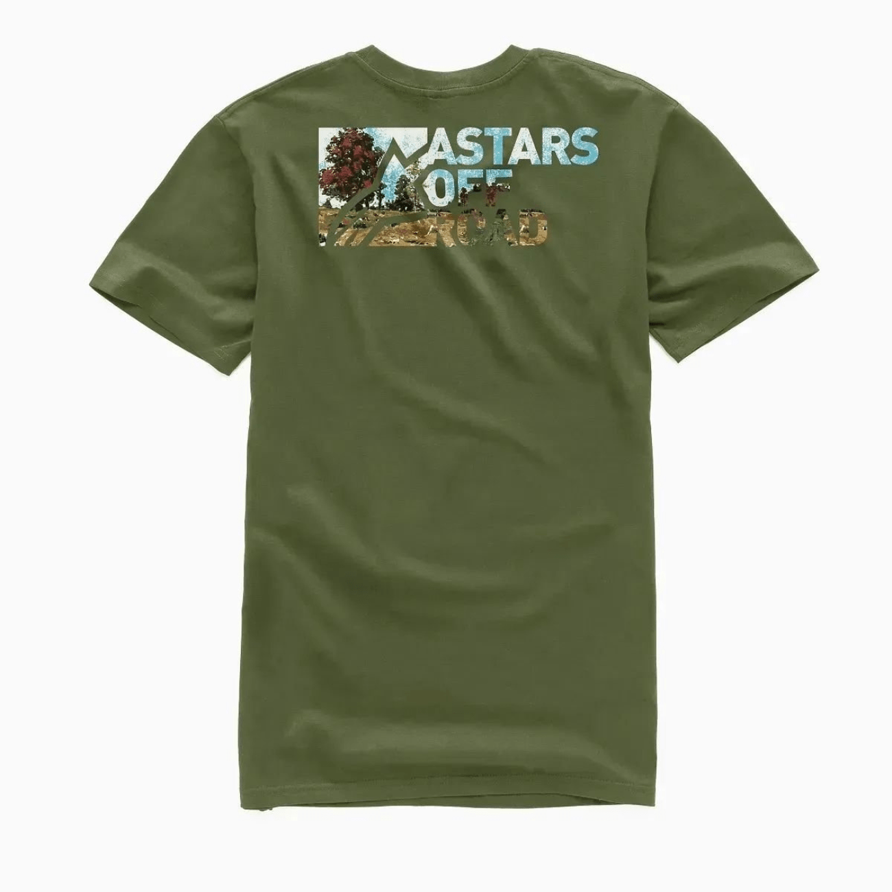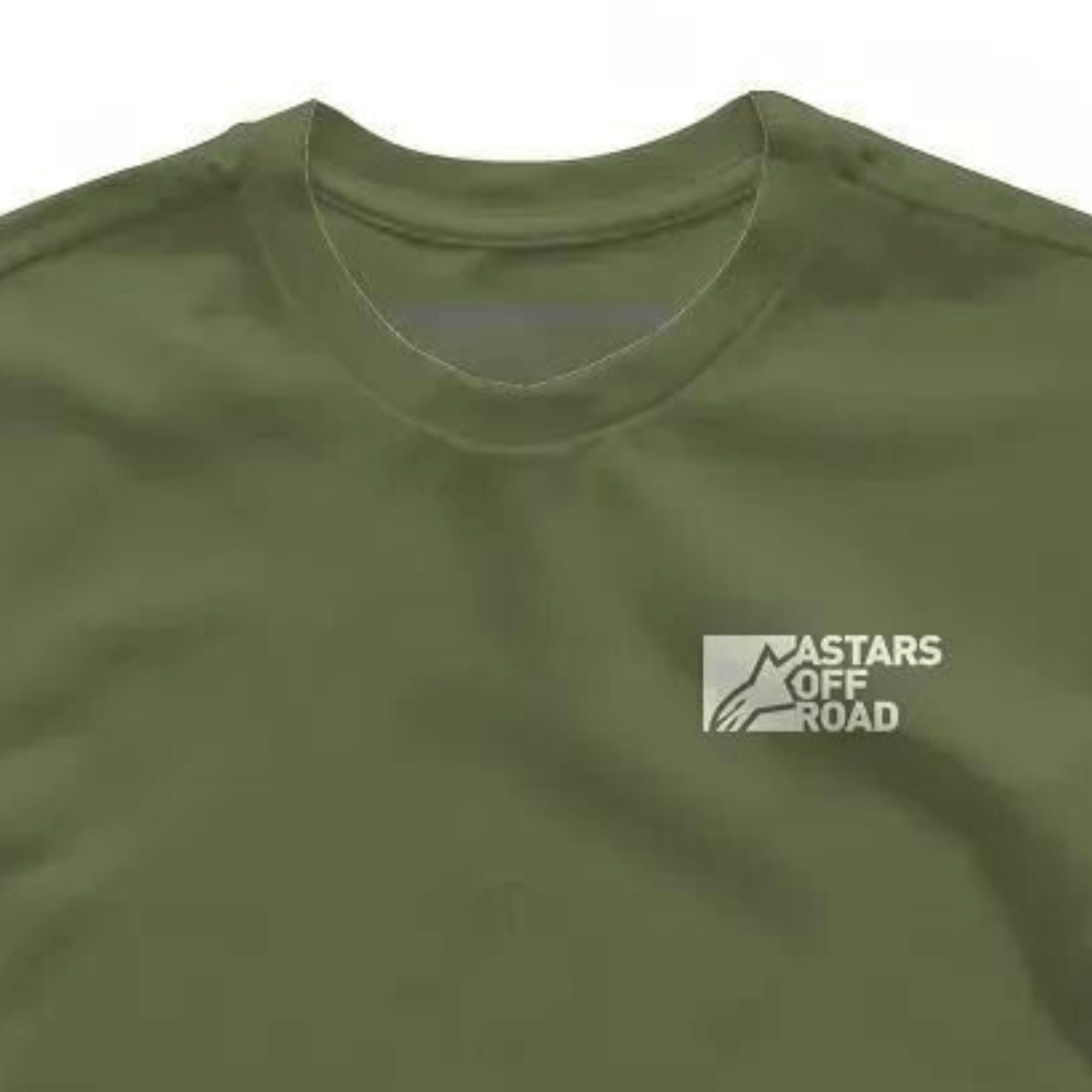 Com silhueta clássica e corte relaxado, é perfeita para o dia a dia. O destaque fica por conta da estampa frontal com o logo Alpinestars e da arte exclusiva “Astars Offroad” nas costas, que reforçam a identidade da marca em uma peça moderna e atemporal.