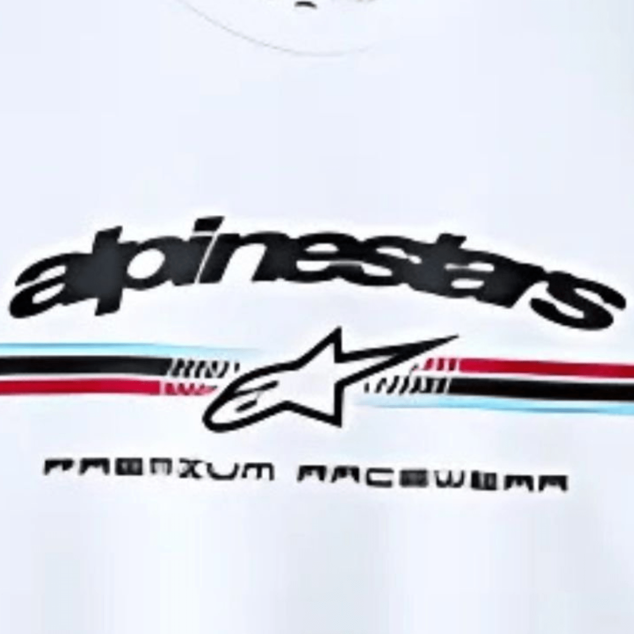 O visual é marcado pelo logotipo Alpinestars estampado na parte frontal, trazendo autenticidade e identidade para o look. Além disso, conta com impressão interna no pescoço e etiquetagem externa, reforçando o acabamento premium da marca.