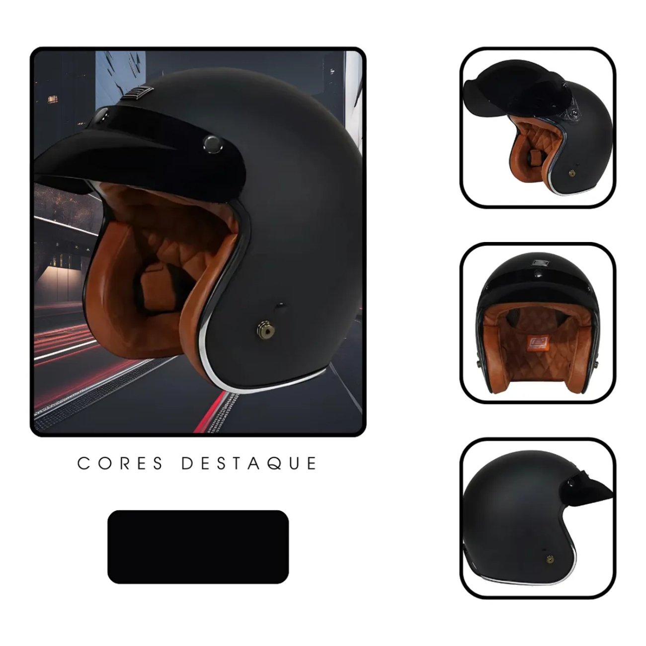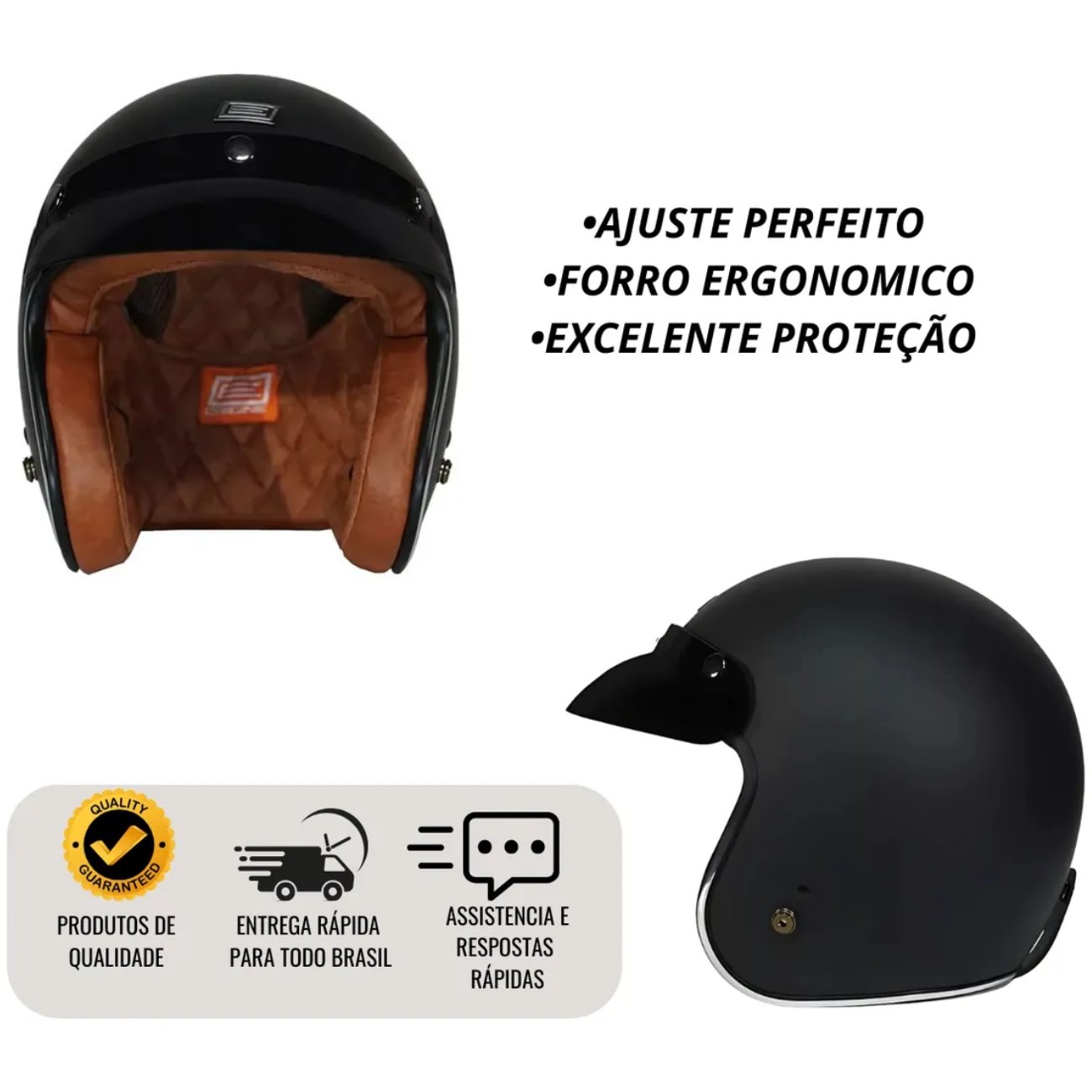 O interior em tecido premium proporciona conforto superior, enquanto o casco compacto assegura um encaixe perfeito, combinando estilo e proteção. Detalhes como a tira traseira em couro para fixação de óculos aviador reforçam o visual vintage e a funcionalidade da peça.