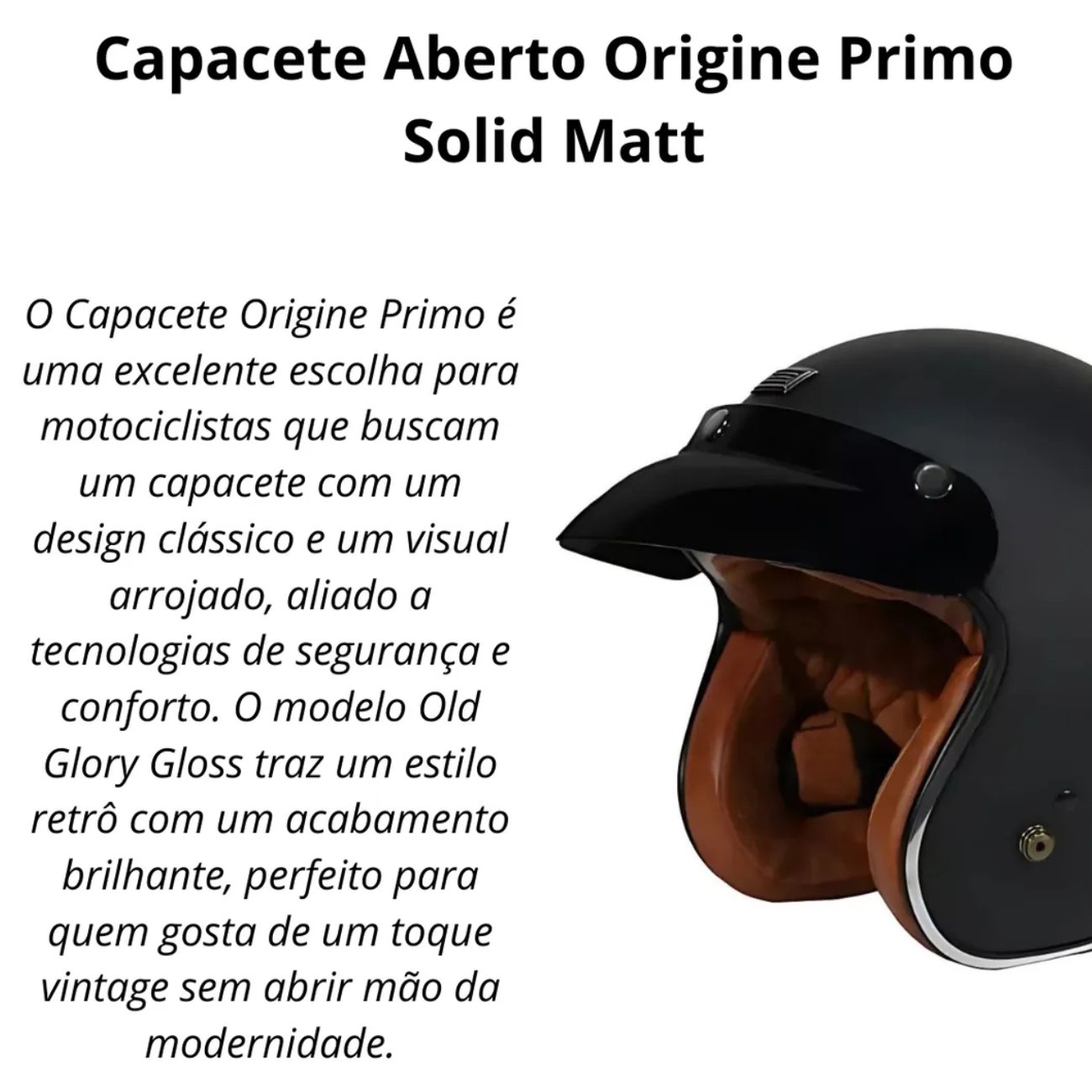 O Capacete Aberto Origine Primo West Coast Matt une o charme do estilo retrô à funcionalidade essencial para o uso urbano. Compacto, leve e com grafismos vintage exclusivos, este modelo é ideal para motociclistas que valorizam segurança e design clássico em um só produto.