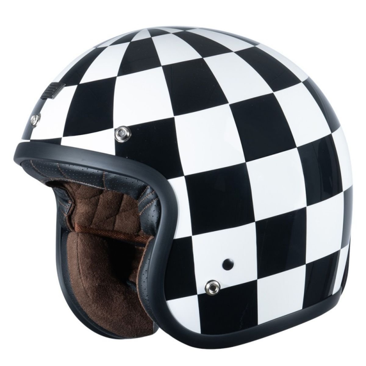 O modelo possui cinco pontos de fixação para acessórios como viseiras bubble ou palas, e acompanha uma pala de fábrica. O suporte traseiro em couro permite prender óculos aviador, reforçando o estilo vintage e funcional do capacete. Certificado pela norma ECE 22.06, atende aos mais altos padrões internacionais de segurança.