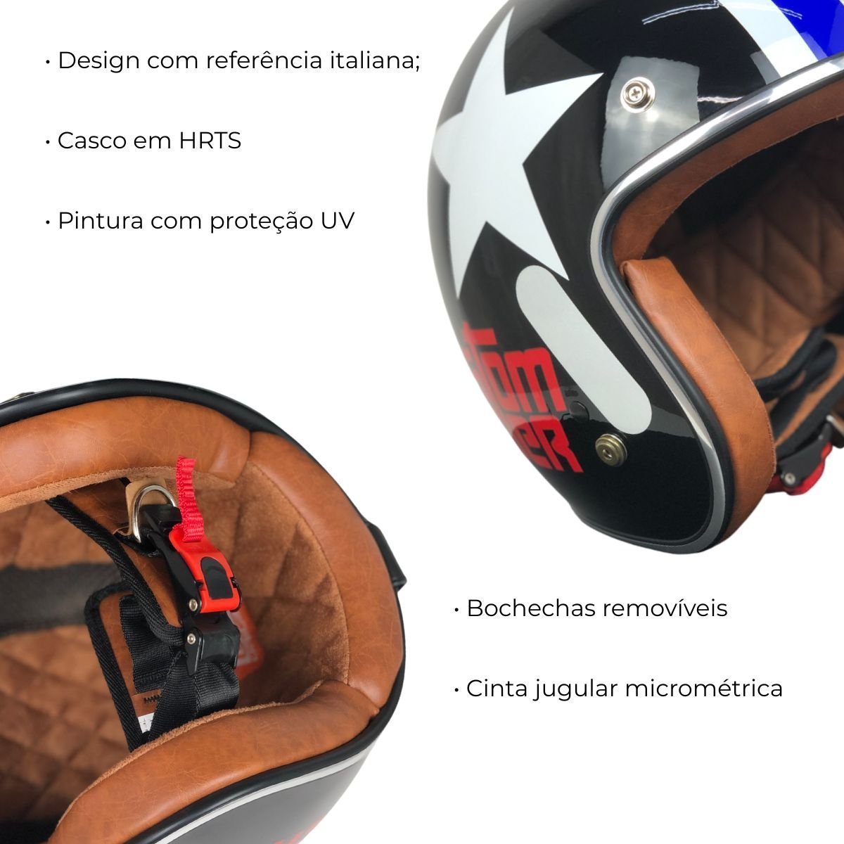O Capacete Origine Primo é a escolha ideal para motociclistas que buscam um modelo retrô, leve e confortável. Com design compacto e grafismos vintage exclusivos, alia estilo clássico à praticidade do dia a dia. Seu interior ergonômico garante encaixe perfeito, enquanto os suportes para acessórios permitem personalização com palas e viseiras bubble, incluindo suporte para óculos aviador, inspirado no universo café racer.