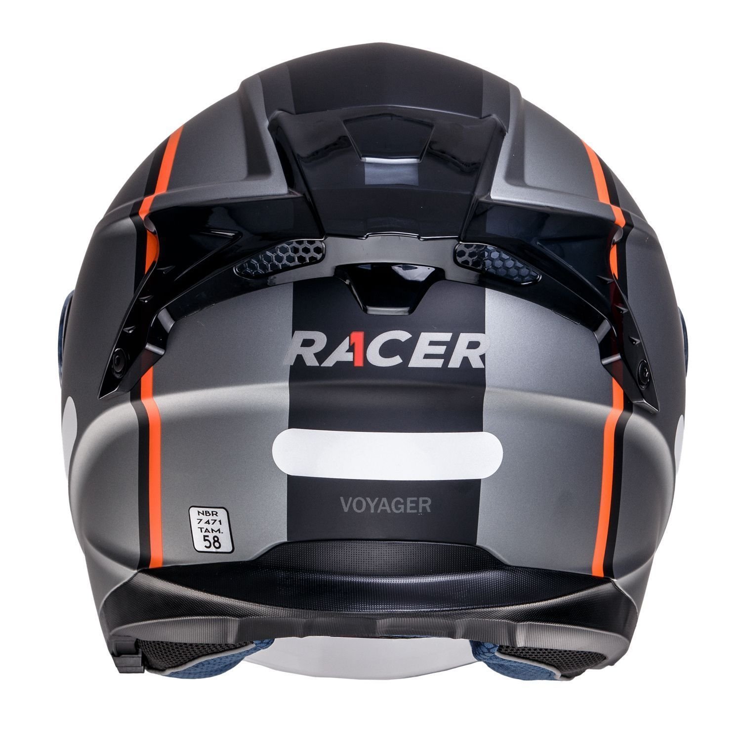 Leve, com apenas 1.480 gramas (tamanho 58), e fabricado em ABS de alta pressão aliado a sistema EPS de múltipla densidade, o Racer1 RC3 Wind-R absorve impactos de forma eficiente e distribui a energia, reduzindo riscos em situações adversas. A ventilação superior mantém o frescor, enquanto o spoiler traseiro esportivo garante estabilidade e estilo.