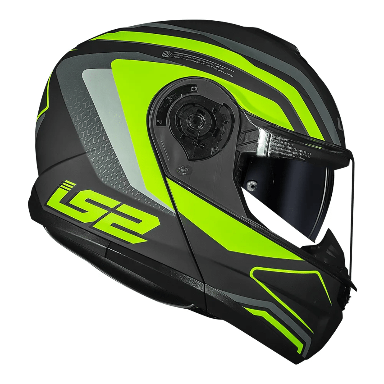 Produzido com KPA (Kinetic Polymer Alloy), material exclusivo da LS2, o casco combina leveza, elasticidade e resistência, garantindo uma estrutura robusta com excelente capacidade de absorção de impactos. Com apenas 1550 g (±50 g), é um capacete articulado que não compromete o desempenho por peso excessivo, tornando a pilotagem mais confortável mesmo em trajetos mais longos.