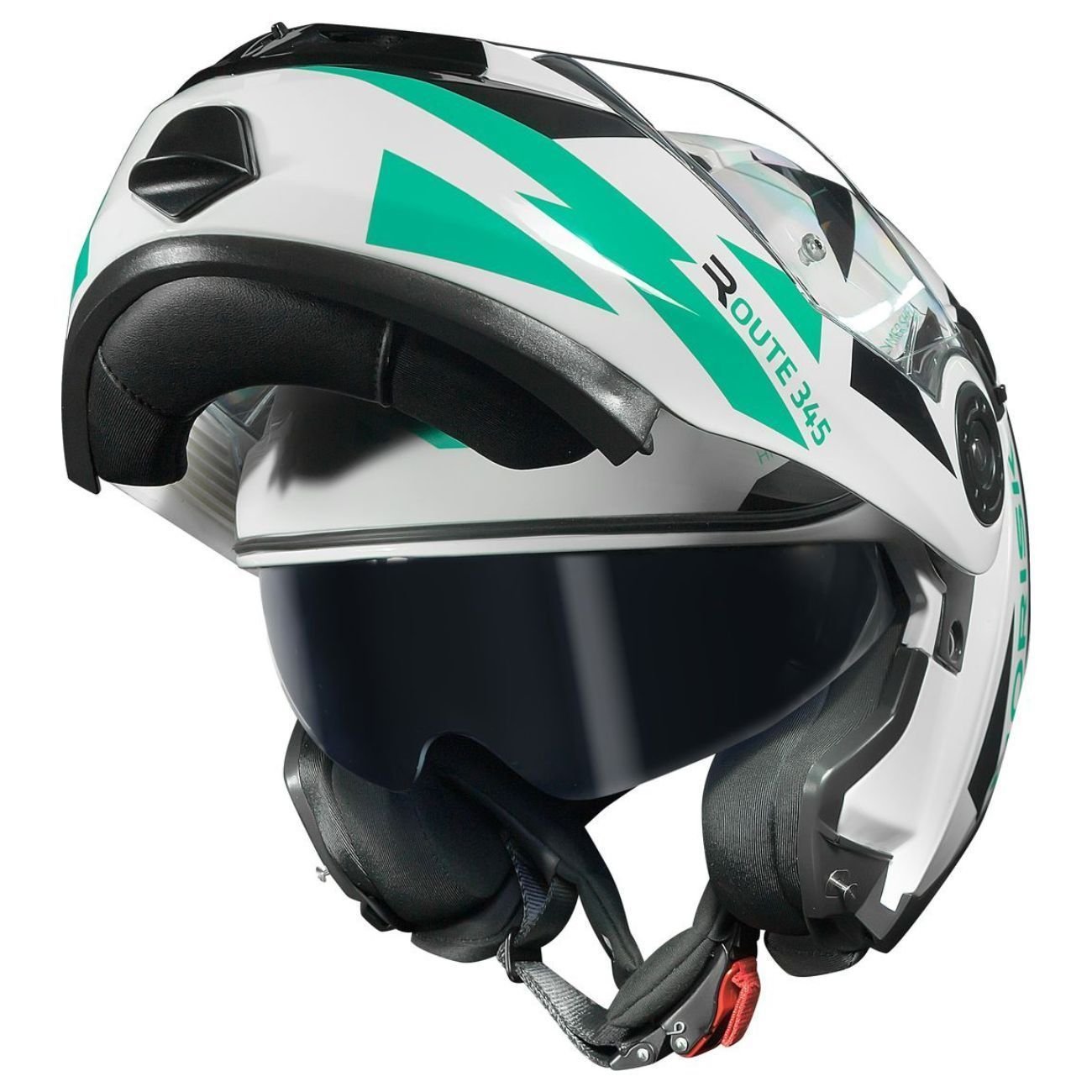 O grande trunfo do FF345 Route é a sua versatilidade. Com um sistema de articulação robusto, ele permite que o piloto levante a queixeira com facilidade em paradas rápidas ou postos de combustível, sem precisar remover o capacete.