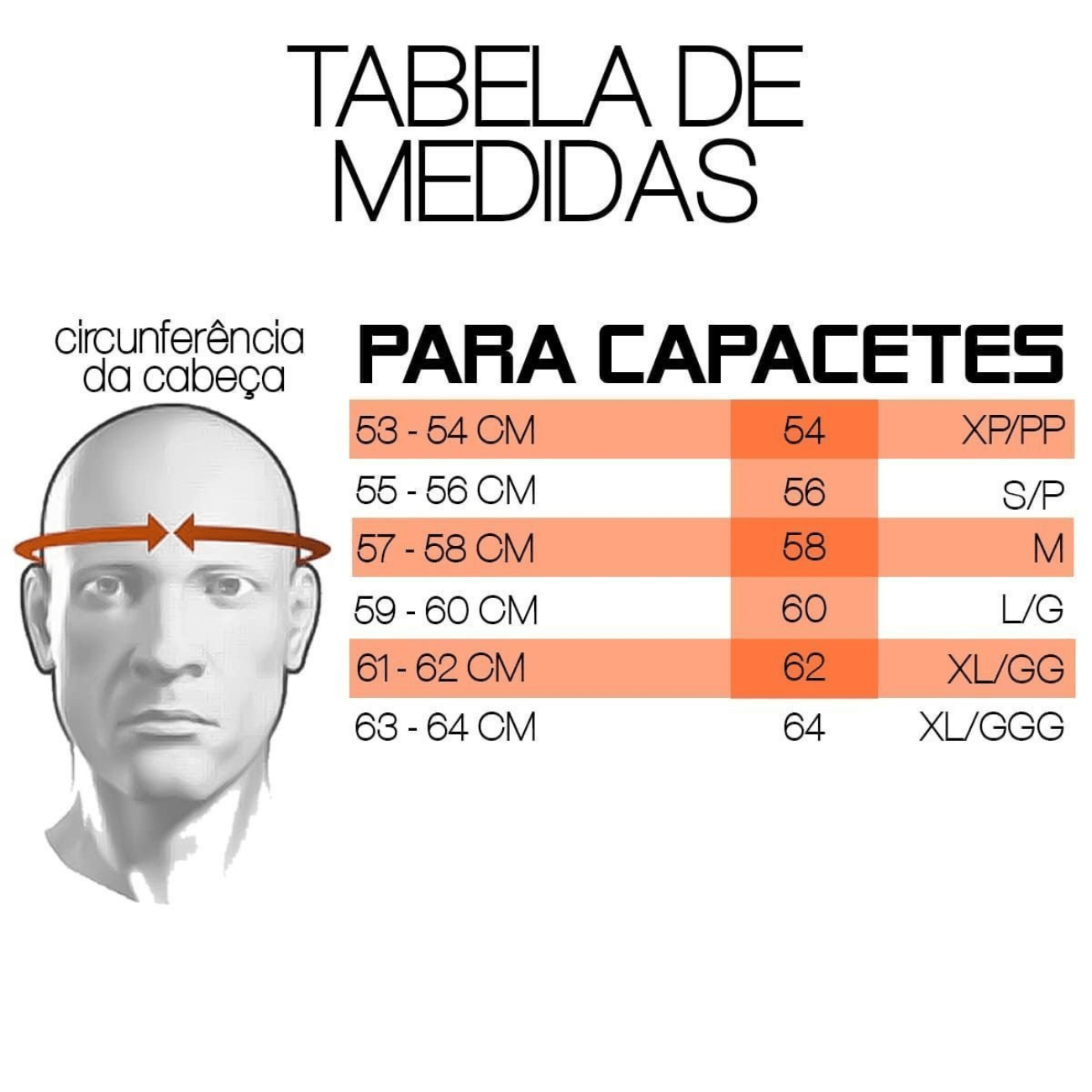 Viseira transparente em policarbonato com visão panorâmica de 190° e tratamento antirrisco;