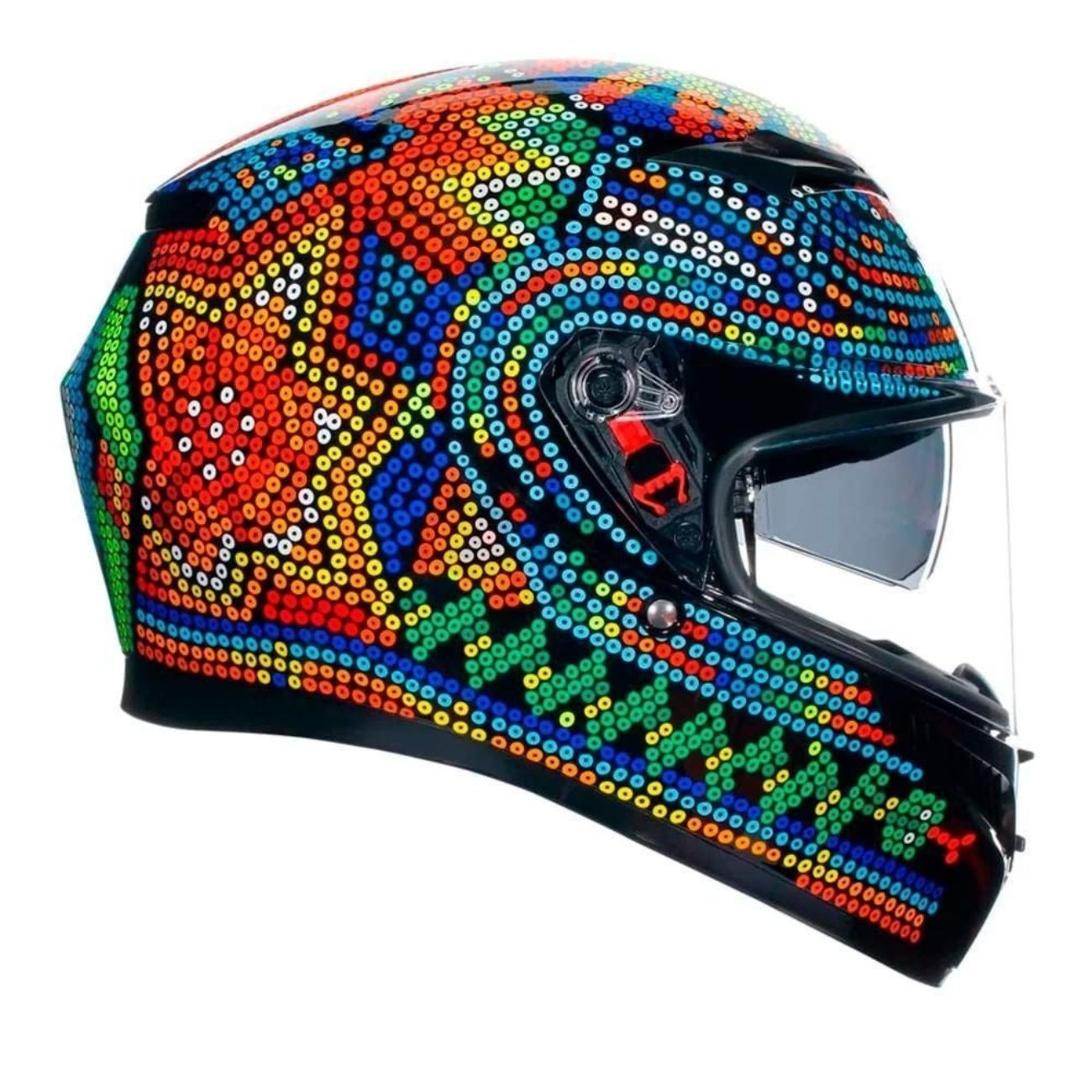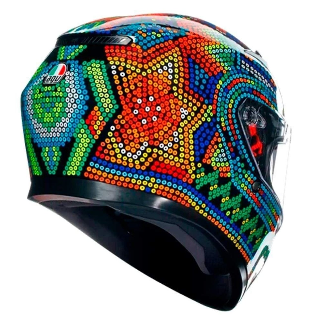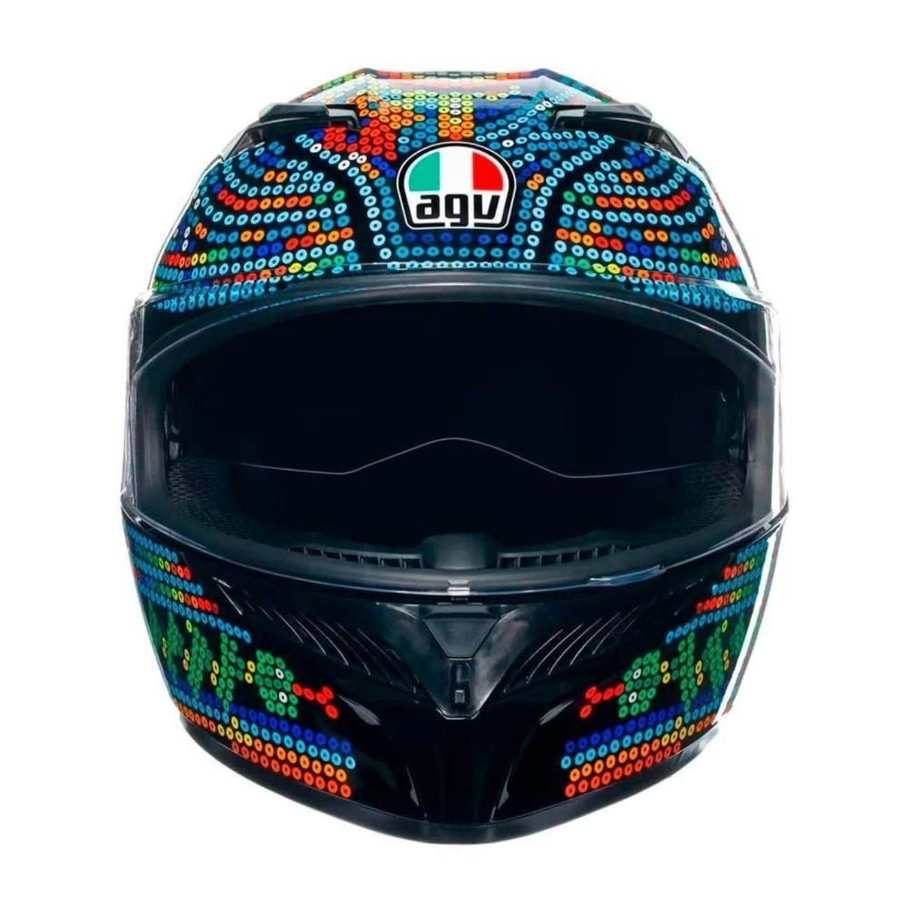 O Capacete AGV K3 Winter Test Valentino Rossi é projetado para pilotos que buscam o máximo em segurança, conforto e tecnologia. Com construção avançada segundo o protocolo AGV Extreme Safety, atende aos rigorosos padrões internacionais, incluindo ECE22.06, garantindo proteção superior em qualquer situação. Seu design aerodinâmico reduz a tensão no pescoço em altas velocidades, permitindo maior concentração na pilotagem. Equipado com viseira Ultravision e Pinlock Max Vision, oferece amplo campo de visão e proteção contra embaçamento, mesmo em condições adversas. A viseira solar integrada e o forro removível DrySpeed aumentam praticidade e conforto, enquanto o sistema Eyewear Ready permite o uso de óculos com total conforto. Preparado para instalação de intercomunicadores, combina tecnologia e segurança para quem exige desempenho elevado.