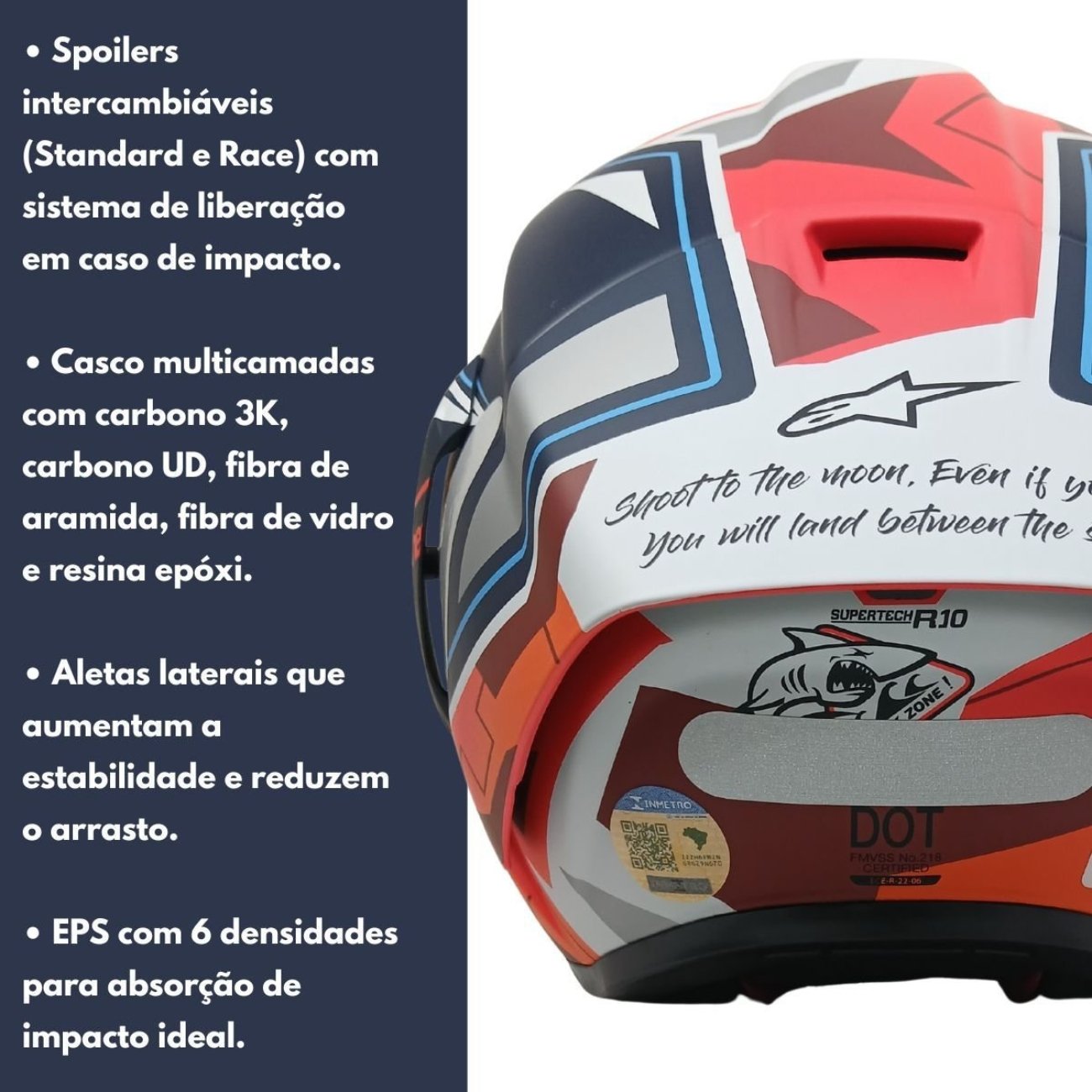 Ideal para pilotos que não abrem mão da máxima segurança e performance, o Supertech R10 vem equipado com tecnologia avançada em ventilação, ajuste personalizado e sistema de emergência para remoção rápida, consolidando-se como um dos capacetes mais completos e confiáveis do mercado.