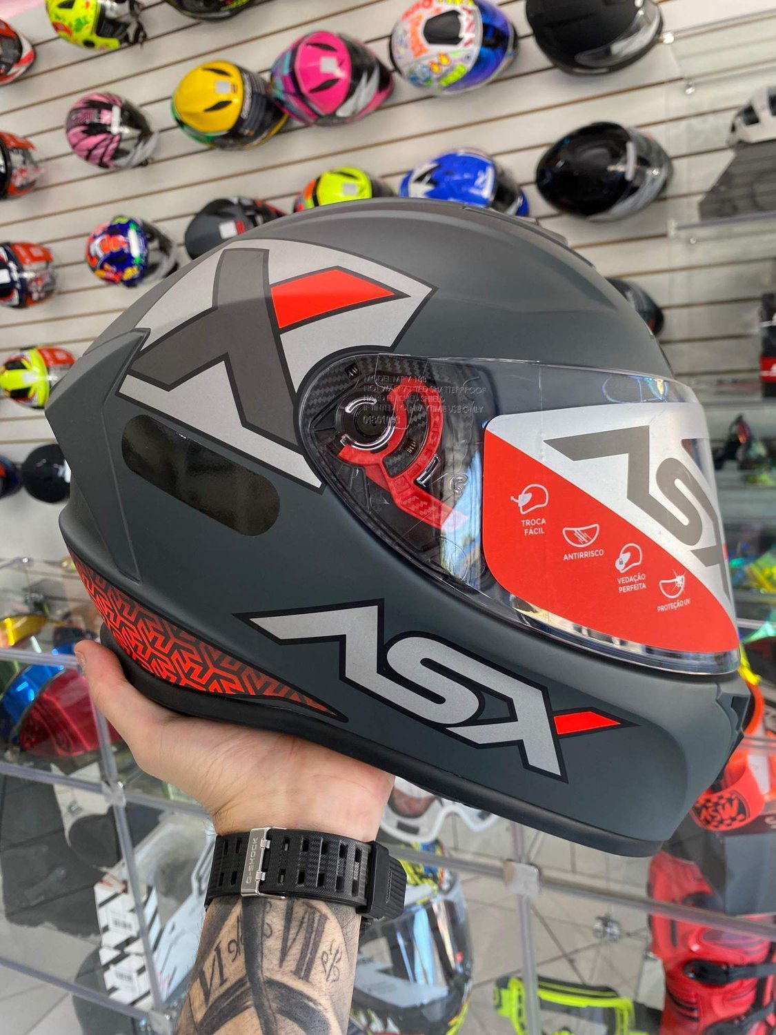 O Capacete ASX Draken Concept é sinônimo de inovação, segurança e estilo. Produzido em ABS de alta resistência, conta com design aerodinâmico e acabamento sofisticado. É o primeiro capacete certificado pelo INMETRO no tamanho 64, garantindo máxima confiabilidade em todos os testes de segurança. Com forro removível e hipoalergênico, viseira em policarbonato com proteção UV e sistema de ventilação eficiente, o Draken Concept proporciona conforto e proteção em qualquer trajeto, seja no dia a dia ou em viagens mais longas.