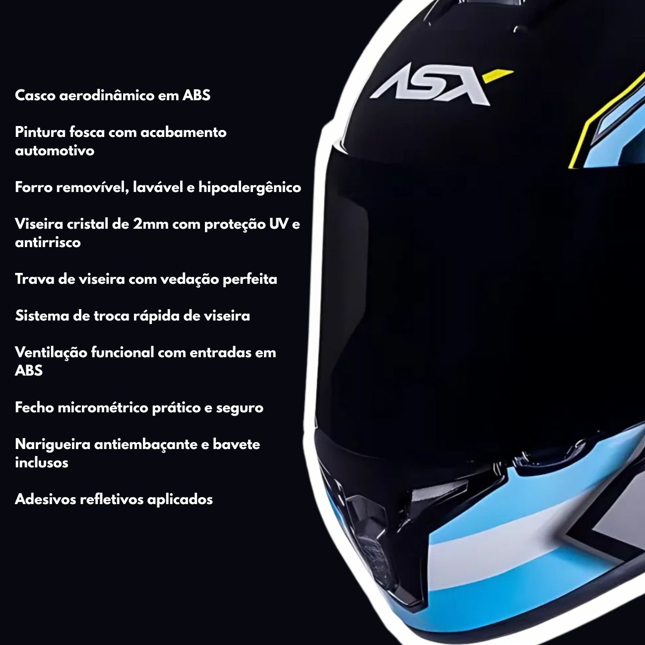 O capacete ASX Draken Pilot foi desenvolvido com foco em esportividade, conforto e segurança. Ideal para uso urbano e viagens, ele combina design agressivo com tecnologia de ponta e é indicado para quem busca mais do que apenas um visual impactante — mas também confiança no dia a dia.