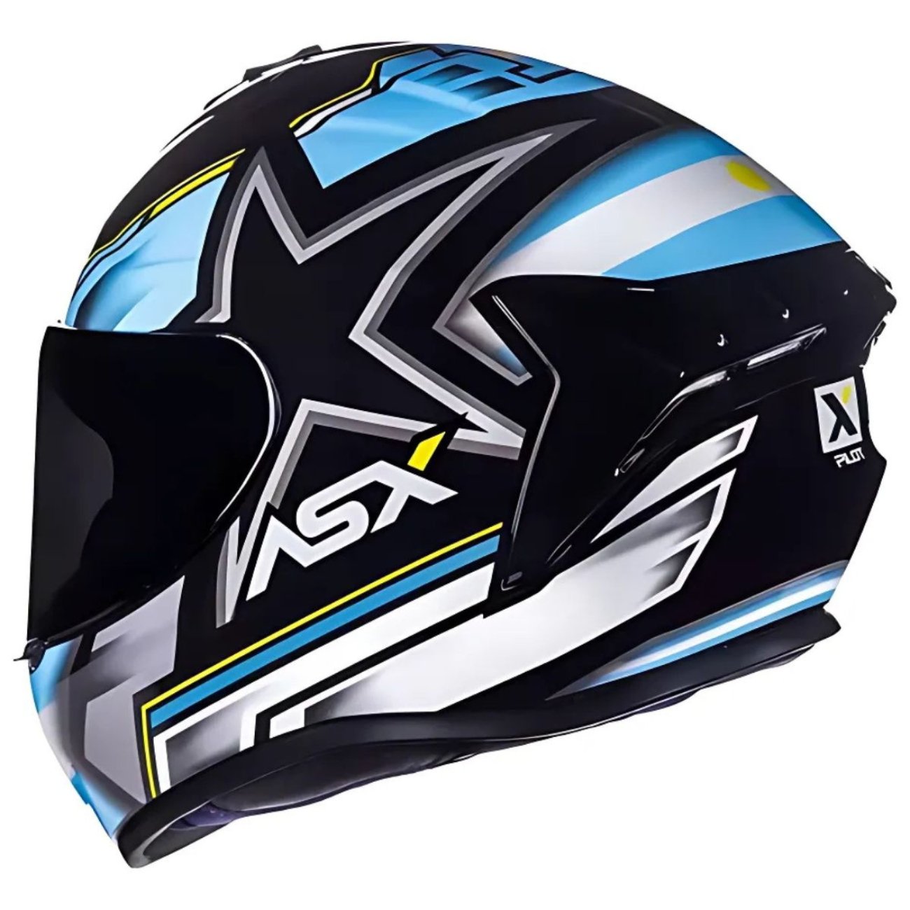 Capacete ASX Draken Pilot — Preto/Azul/Amarelo (Matte)
