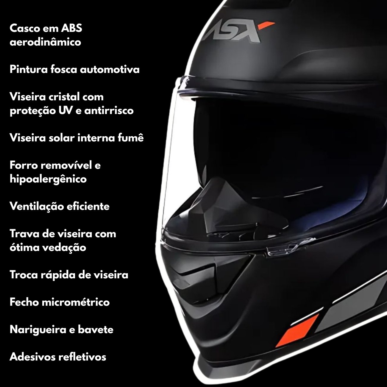 Seja na rotina do dia a dia ou em viagens com os amigos, o Capacete Fechado Esportivo ASX Eagle SV Solid é a escolha definitiva para quem busca performance, proteção e visual moderno.