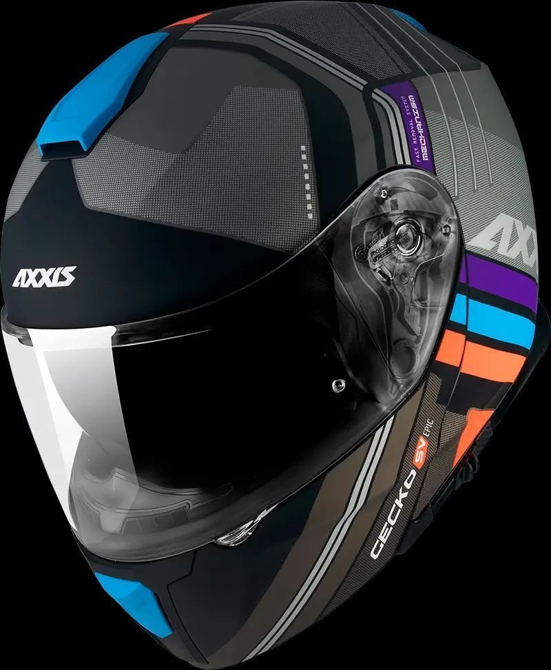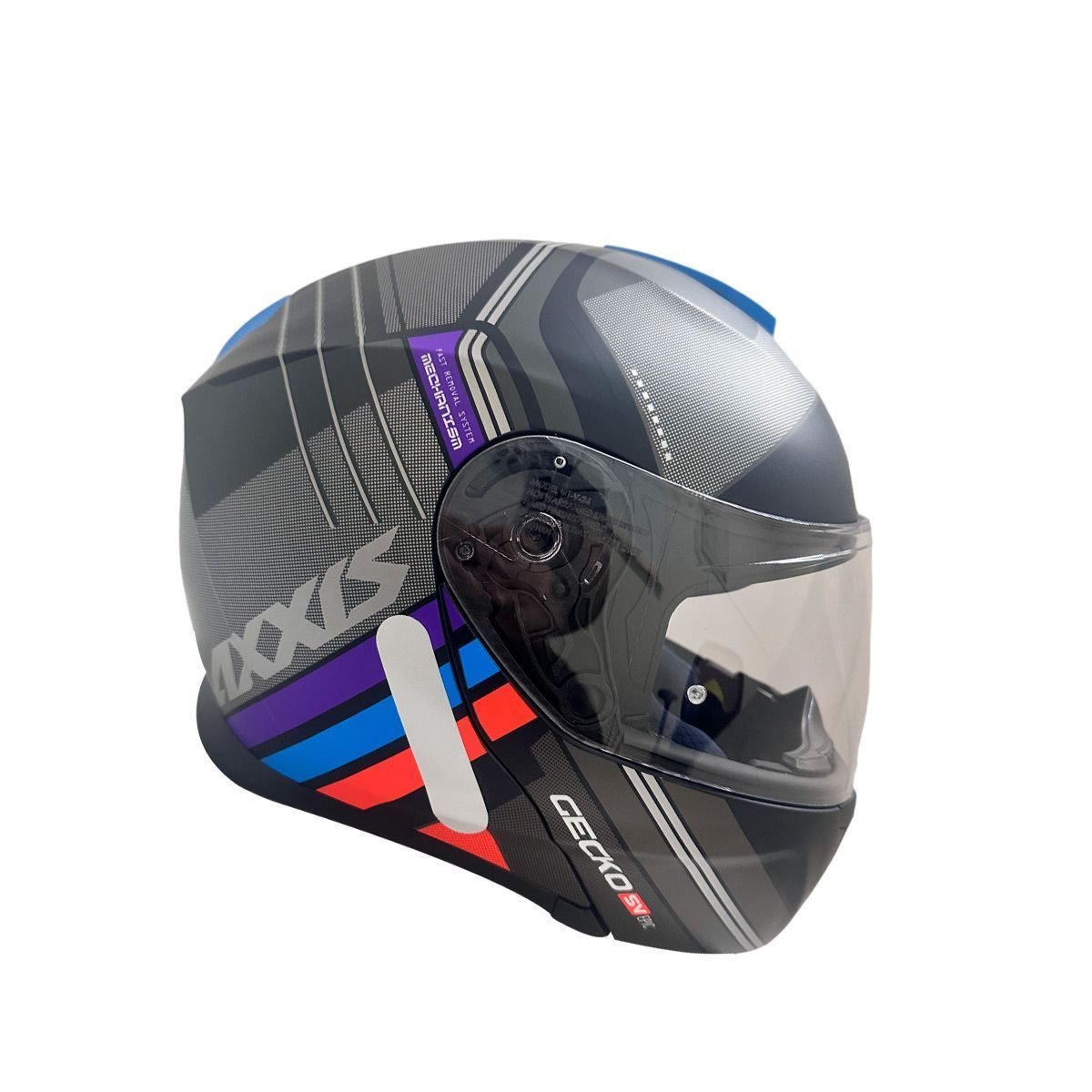 O Axxis Gecko SV Epic B1 é um capacete modular (flip up) que une versatilidade, segurança e conforto para todos os estilos de motociclistas. Fabricado em ABS de alta resistência, conta com viseira solar integrada, ampla viseira transparente com tratamento antirrisco e compatibilidade com Pinlock MaxVision, garantindo excelente visibilidade em qualquer condição climática. Seu interior é totalmente removível, lavável e feito com tecido antialérgico, proporcionando frescor e higiene em todas as viagens.