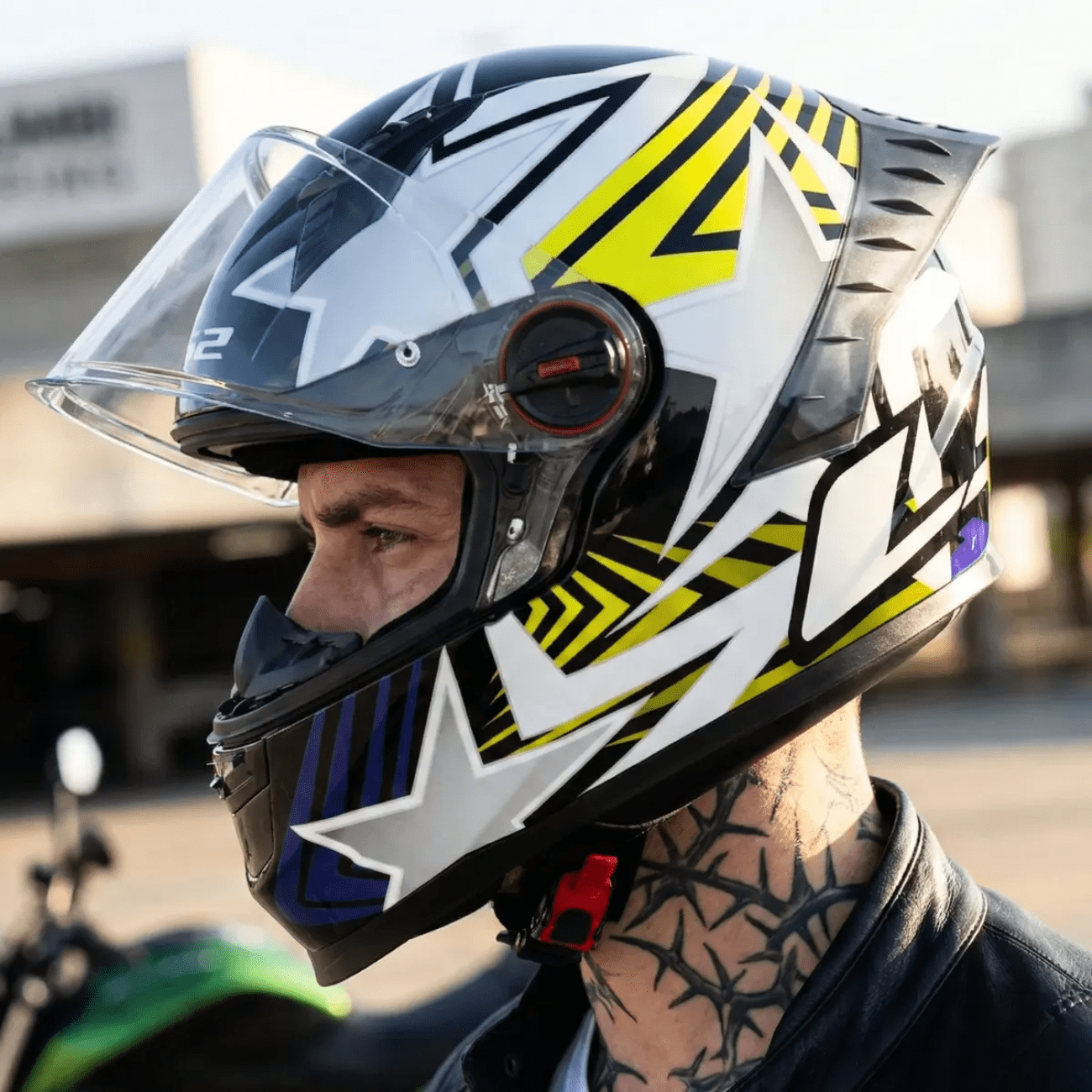 O grafismo Estellar Preto e Amarelo não entrega apenas um design moderno e veloz, mas também aumenta a visibilidade do piloto no trânsito, unindo a segurança consagrada da LS2 a um conjunto tecnológico superior, agora com óculos interno solar integrado.