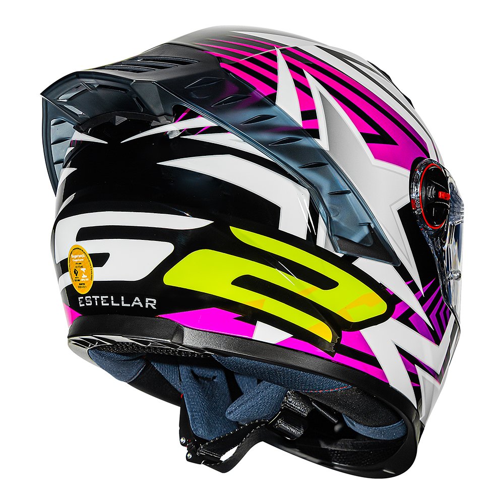 Seu novo spoiler alongado e integrado ao casco melhora a estabilidade em altas velocidades, reduz a turbulência e reforça o visual racing. Além disso, o sistema de ventilação foi aprimorado, garantindo fluxo de ar eficiente e conforto térmico mesmo em dias quentes. O mecanismo de viseira com detalhes em vermelho adiciona um toque de estilo e praticidade, com dois níveis de abertura que facilitam o uso no dia a dia.