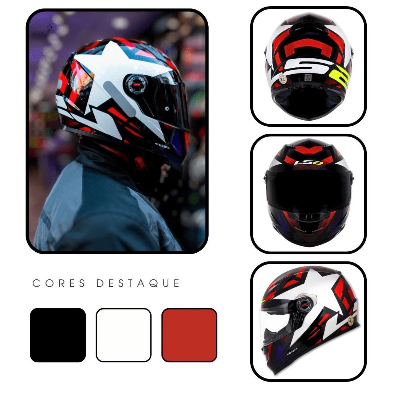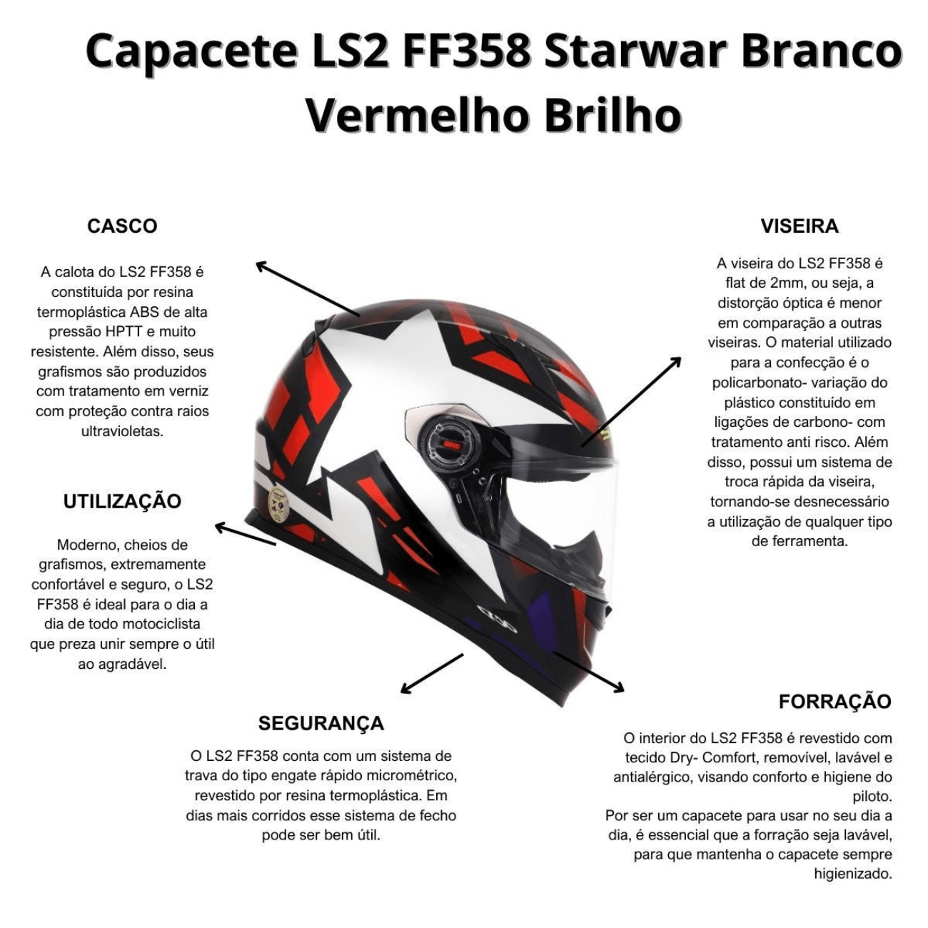 O LS2 FF358 é um capacete moderno e repleto de grafismos que unem estilo, conforto e alta segurança para o uso diário. Com classificação de 4 estrelas pelo órgão britânico SHARP, que avalia capacetes segundo padrões internacionais rigorosos, ele é ideal para motociclistas que buscam proteção confiável sem abrir mão do design e da praticidade.