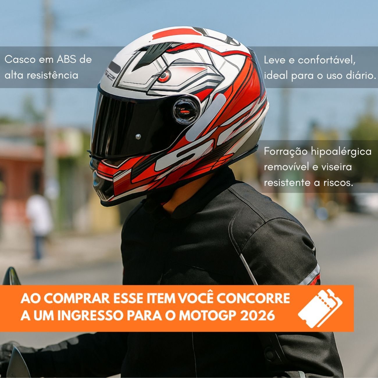 Encaixe perfeitoO formato interno vestiu perfeitamente na minha cabeça e não ficou nenhum ponto de pressão doendo. A viseira não distorce a visão e a troca rápida é muito útil na hora de limpar os insetos mortos kkkk. Faz um barulhinho de vento na rodovia, mas nada que chegue a incomodar em viagens curtas.Produto: Capacete Fechado Ls2 Ff358 Tribal Laranja -