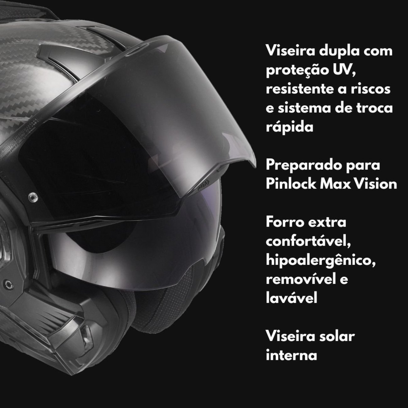 Material do casco: Fibra 100% carbono – ultraleve e altamente resistente