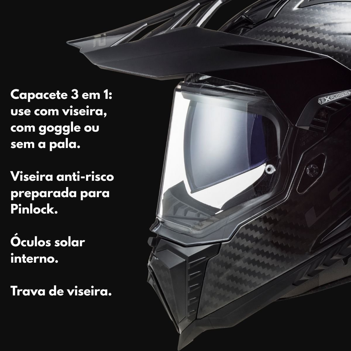 Capacete 3 em 1: uso com viseira, com goggle ou sem pala