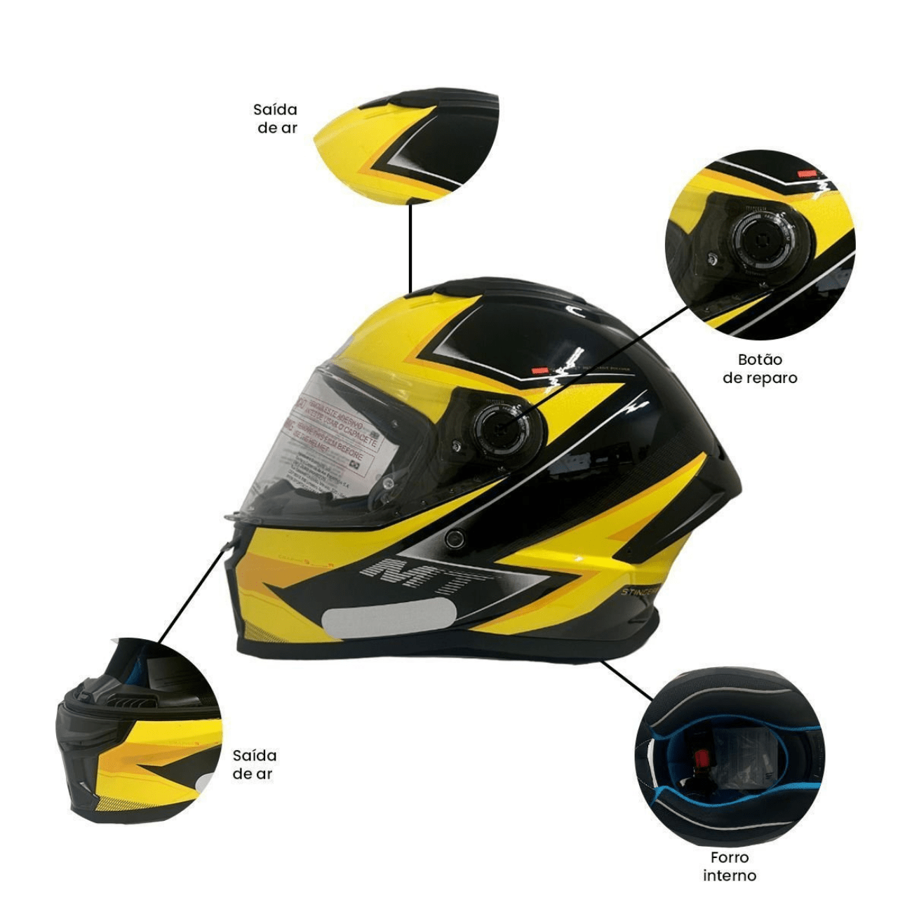 O Stinger 2 é um capacete esportivo integral que une leveza, proteção avançada e excelente custo-benefício. Desenvolvido pela MT Helmets, supera a exigente certificação europeia ECE 22.06 e oferece componentes totalmente removíveis e substituíveis, ideal para motociclistas que buscam segurança, conforto e praticidade no dia a dia.