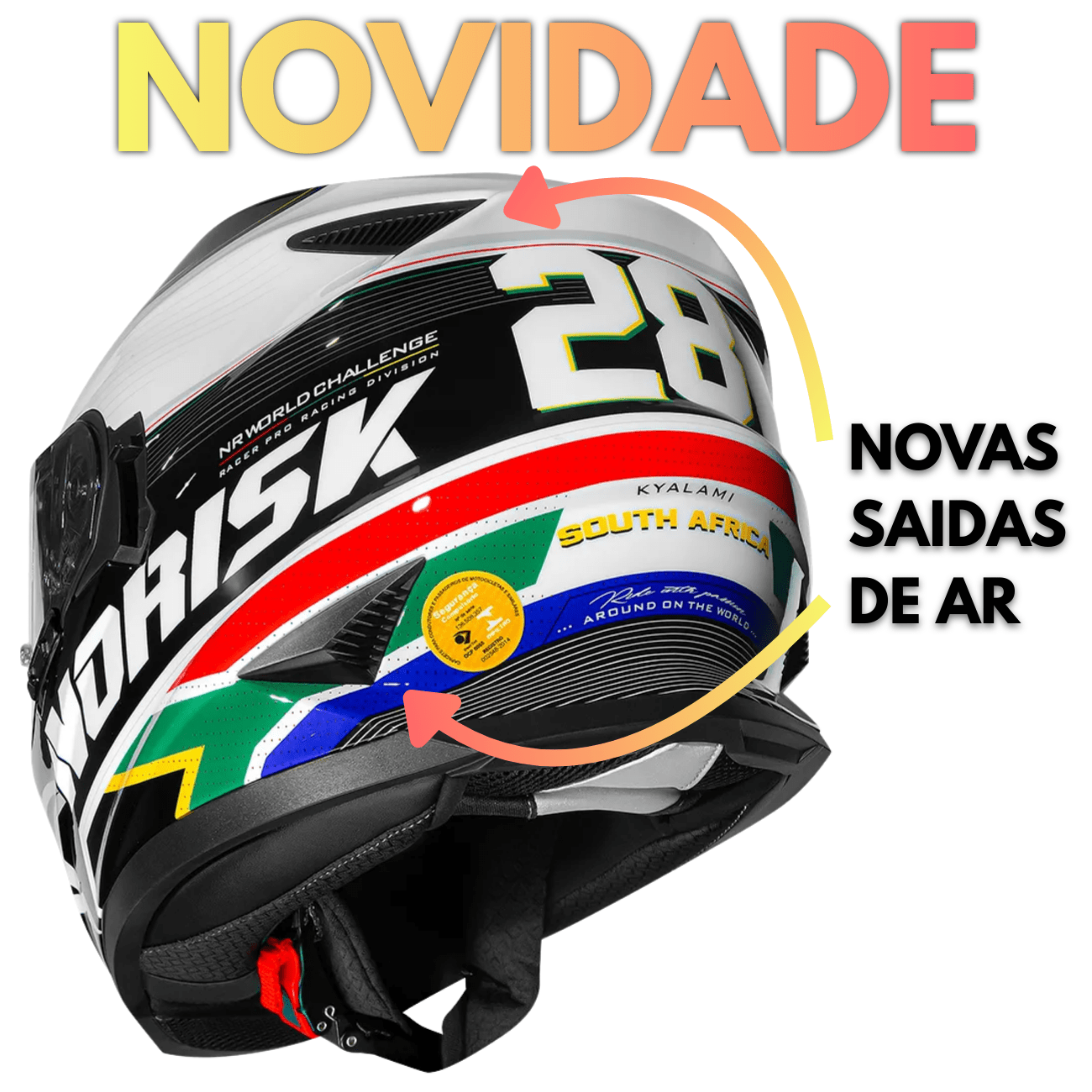 Sua viseira de 2 mm possui proteção UV, resistência a riscos e conta com sistema de 7 estágios de abertura, além de um prático óculos solar interno — ideal para pilotar em dias ensolarados com conforto visual. A trava de viseira proporciona maior segurança em altas velocidades, enquanto o sistema de ventilação com entradas frontais e extratores traseiros garante o controle térmico necessário em diferentes condições climáticas.