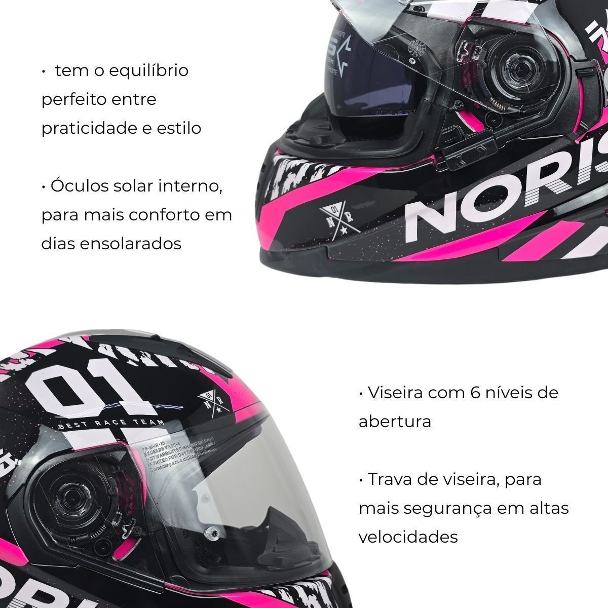 Trava de viseira para maior segurança em altas velocidades