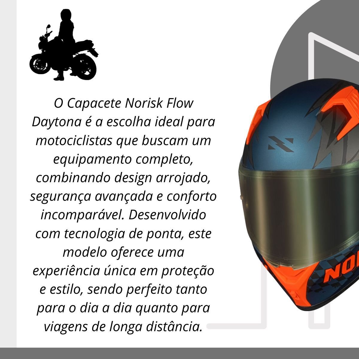 O Norisk Flow foi desenvolvido para motociclistas que buscam proteção, praticidade e performance em qualquer situação, seja no trânsito urbano ou em viagens longas. Seu design moderno e robusto alia aerodinâmica avançada, ventilação eficiente e conforto interno para uma experiência de pilotagem superior.