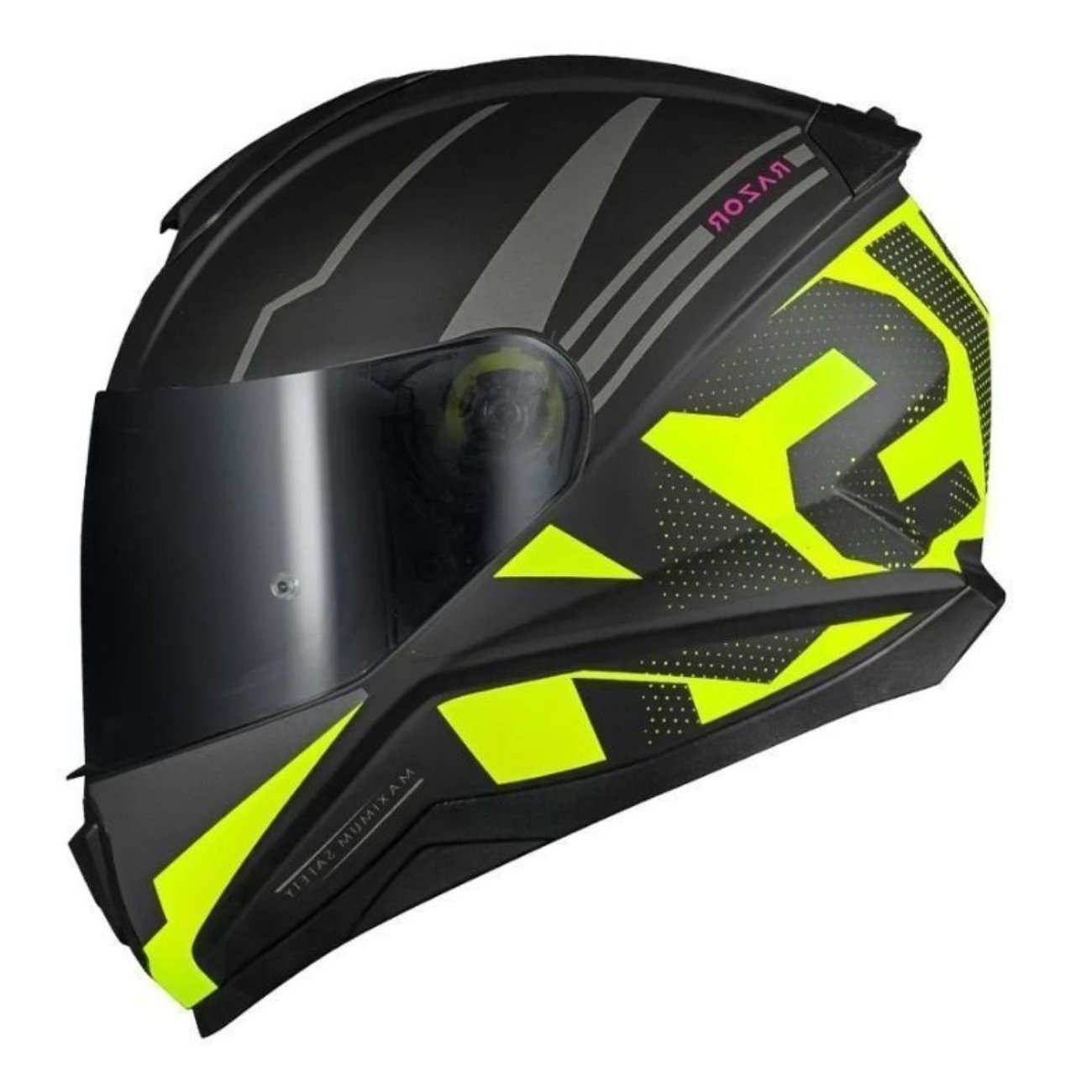Construído com ABS injetado de alta pressão, o Razor combina resistência e leveza em um formato compacto e eficiente. Sua viseira de 2,2 mm em policarbonato tem cinco posições de abertura e está preparada para Pinlock®, garantindo visibilidade clara mesmo em dias frios ou úmidos. O sistema de ventilação conta com entradas frontais e superiores que mantêm o ar circulando continuamente, aumentando o conforto térmico durante o uso.