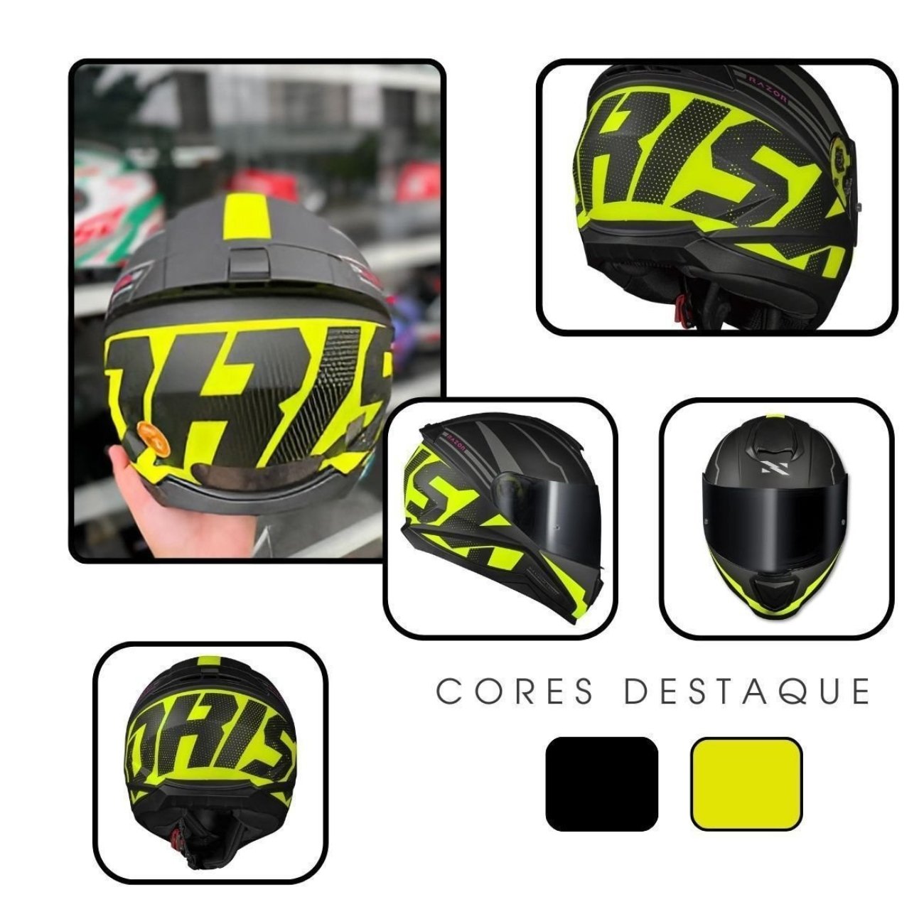 Extras: Sistema de troca rápida de viseira, adesivo de tipo sanguíneo, manual do usuário