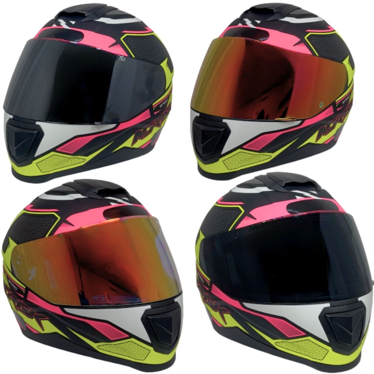 A viseira que acompanha o capacete é na cor cristal. Viseiras em outras cores são apenas para efeito ilustrativo.