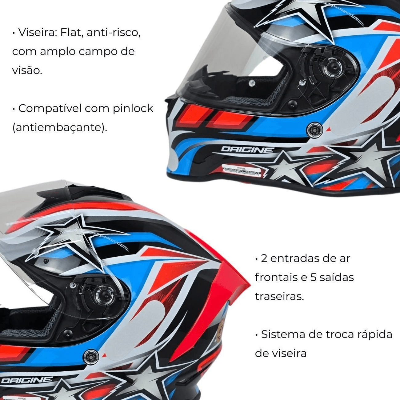 O Capacete Fechado Urbano Origine Dinamo Star Revolution é a solução perfeita para motociclistas que exigem segurança, conforto e alta performance em qualquer situação. Projetado para uso urbano e longas viagens, seu design moderno e aerodinâmico alia leveza e eficiência, oferecendo excelente estabilidade e redução de ruídos durante a pilotagem. Desenvolvido em dois tamanhos de casco para melhor adaptação morfológica, proporciona um ajuste ergonômico que maximiza o conforto, mesmo em trajetos prolongados.