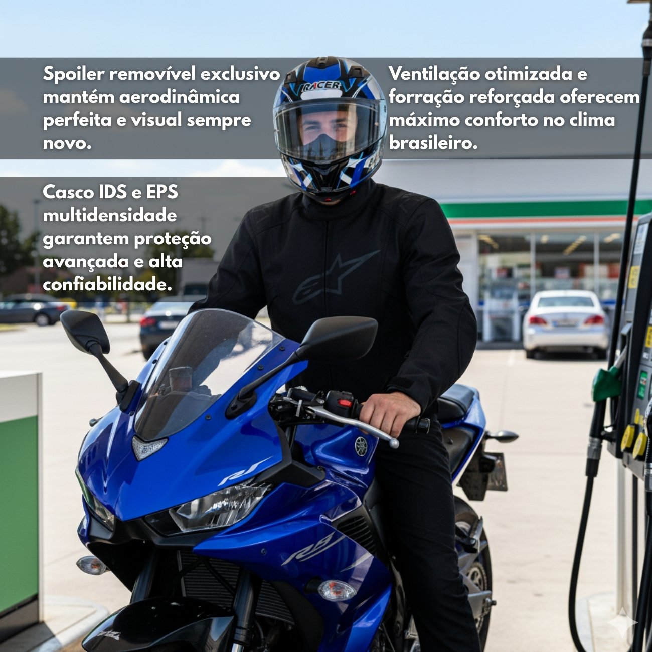 Capacete Esportivo com Spoiler Removível – Design Racing e Tecnologia para o Clima Brasileiro