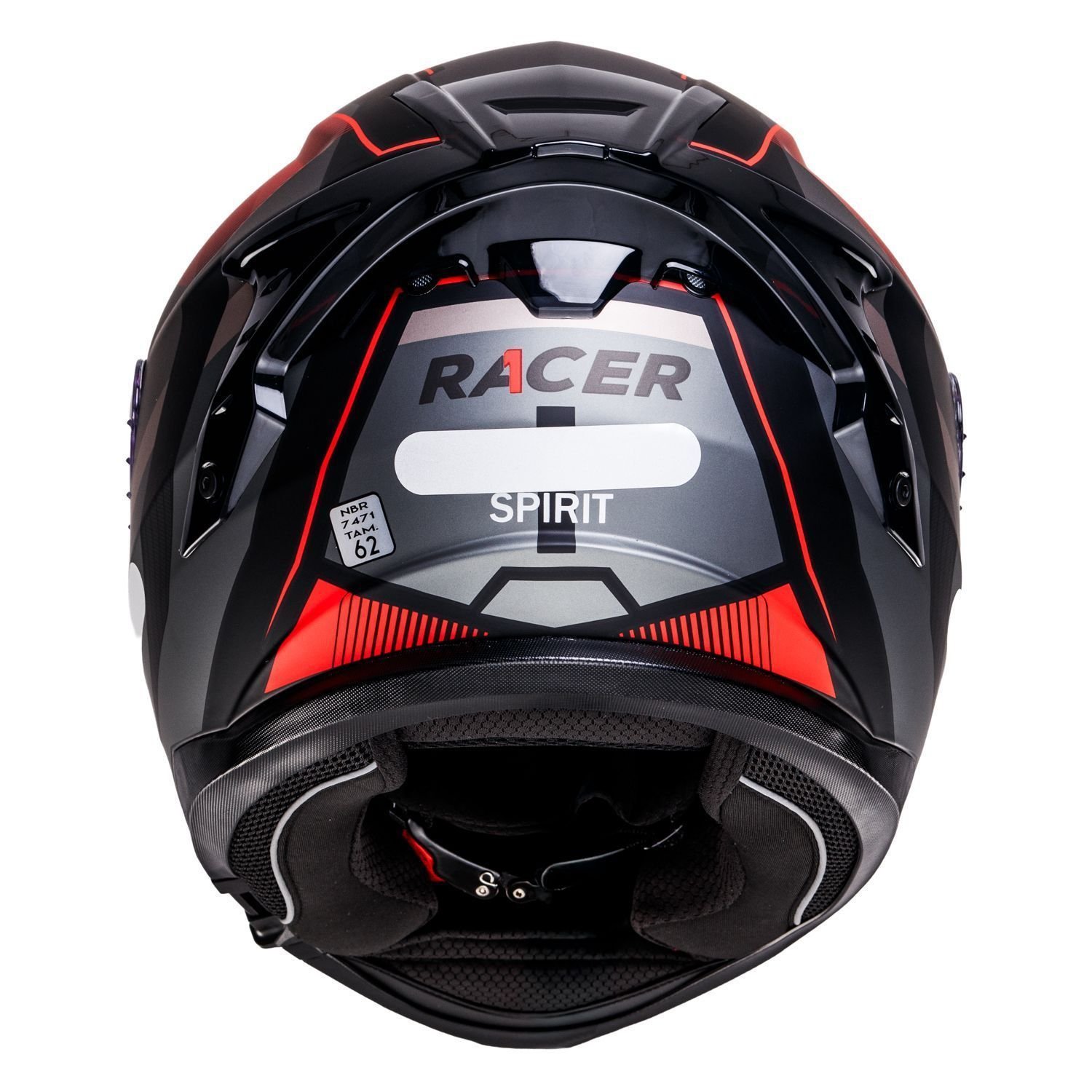 Fabricado em ABS de alta pressão com EPS multi-densidade, o capacete oferece alta resistência e ótima absorção de impactos. O spoiler esportivo traseiro, fixado por parafuso, alia estilo e estabilidade aerodinâmica.