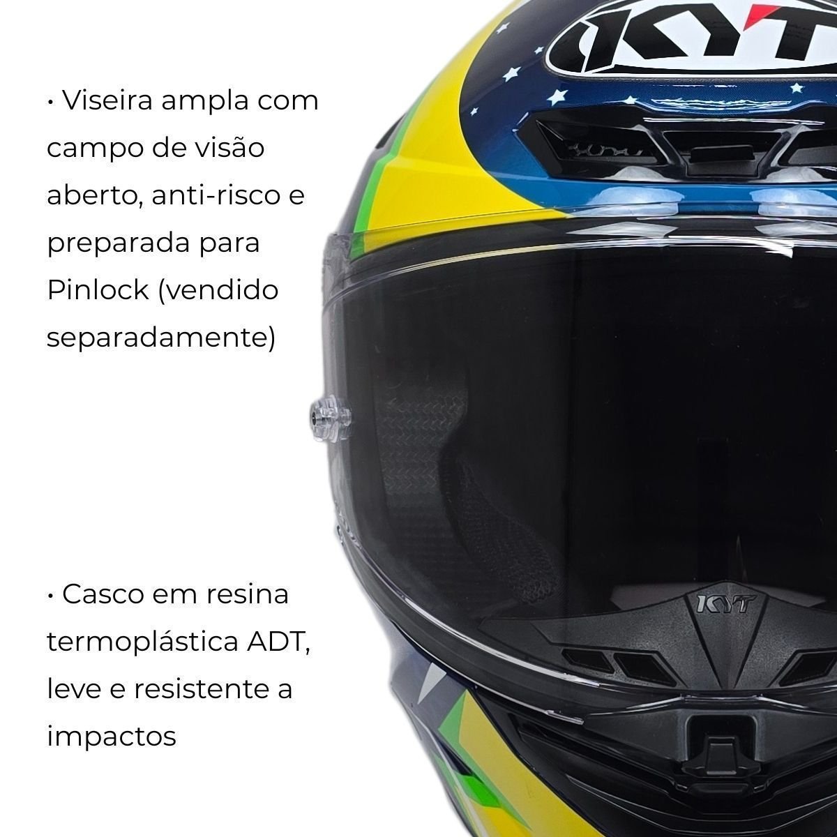 Viseira com amplo campo de visão, encaixe para PINLOCK e anti-riscos (pinlock vendido separadamente como acessório).