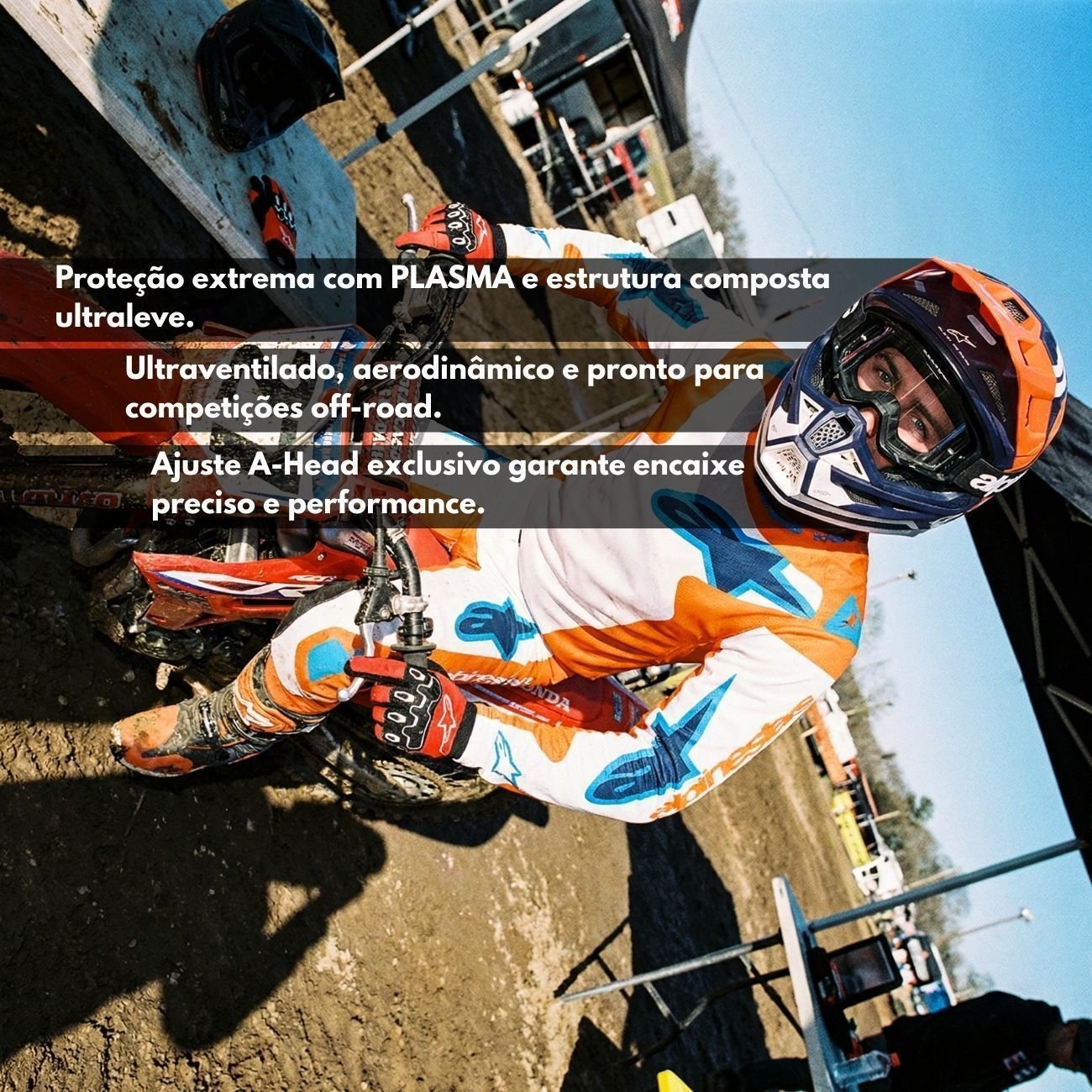 Tecnologia A-Head: O sistema de ajuste A-Head patenteado da Alpinestars permite o ajuste fácil do ângulo e da altura em que o capacete se posiciona na cabeça, para um encaixe perfeito e ideal para o desempenho.